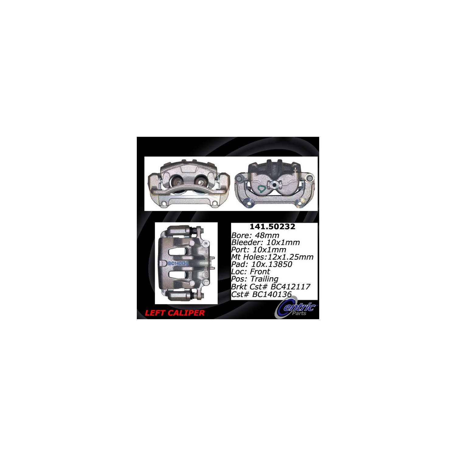 - Brake calipers are critical parts of the brake assembly. This Centric caliper is remanufactured to ensure predictable and reliable performance while providing long service life. To achieve like new condition and protection from rust, the part is tumble blasted then treated with an anti-corrosion finish. The caliper is 100% pressure tested and inspected to guarantee proper operation and fitment. Hardware and brackets are included, where applicable, to facilitate an easy installation. Founded in Southern California in 2000, Centric® achieved recognition for its aftermarket and brake components systems worldwide. Today the company is a leading manufacturer and supplier of brakes, big brake kits, high performance brakes, calipers, discs, rotors, pads, racing brakes, fluid, aftermarket brakes, armored vehicle brake upgrades, big brake kits (BBKs), OEM brake systems for everyday cars, heavy-duty vehicles, and high performance cars. All Centric products are known under the StopTech, C-Tek, Centric, and PosiQuiet labels and backed by quality research and development.