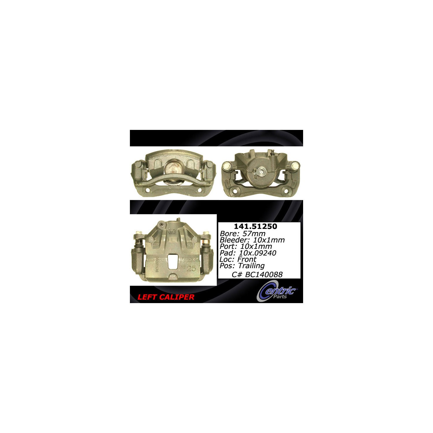 - Brake calipers are critical parts of the brake assembly. This Centric caliper is remanufactured to ensure predictable and reliable performance while providing long service life. To achieve like new condition and protection from rust, the part is tumble blasted then treated with an anti-corrosion finish. The caliper is 100% pressure tested and inspected to guarantee proper operation and fitment. Hardware and brackets are included, where applicable, to facilitate an easy installation. Founded in Southern California in 2000, Centric® achieved recognition for its aftermarket and brake components systems worldwide. Today the company is a leading manufacturer and supplier of brakes, big brake kits, high performance brakes, calipers, discs, rotors, pads, racing brakes, fluid, aftermarket brakes, armored vehicle brake upgrades, big brake kits (BBKs), OEM brake systems for everyday cars, heavy-duty vehicles, and high performance cars. All Centric products are known under the StopTech, C-Tek, Centric, and PosiQuiet labels and backed by quality research and development.