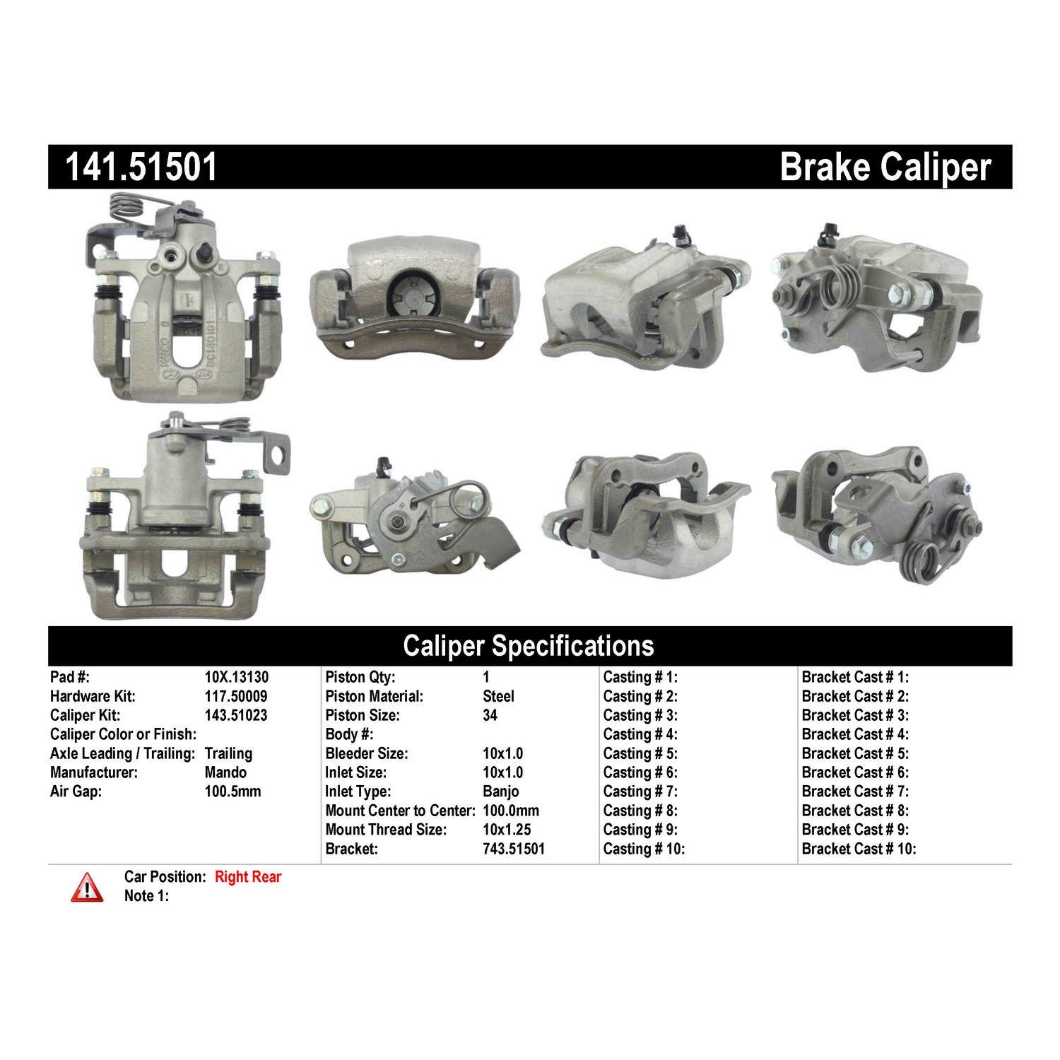 - Remanufactured to meet the most exacting standards for reliable performance; 100% pressure tested & inspected to ensure proper operation & fitment; Treated with anti-corrosion finish; Comes without brake pads; Includes hardware and brackets