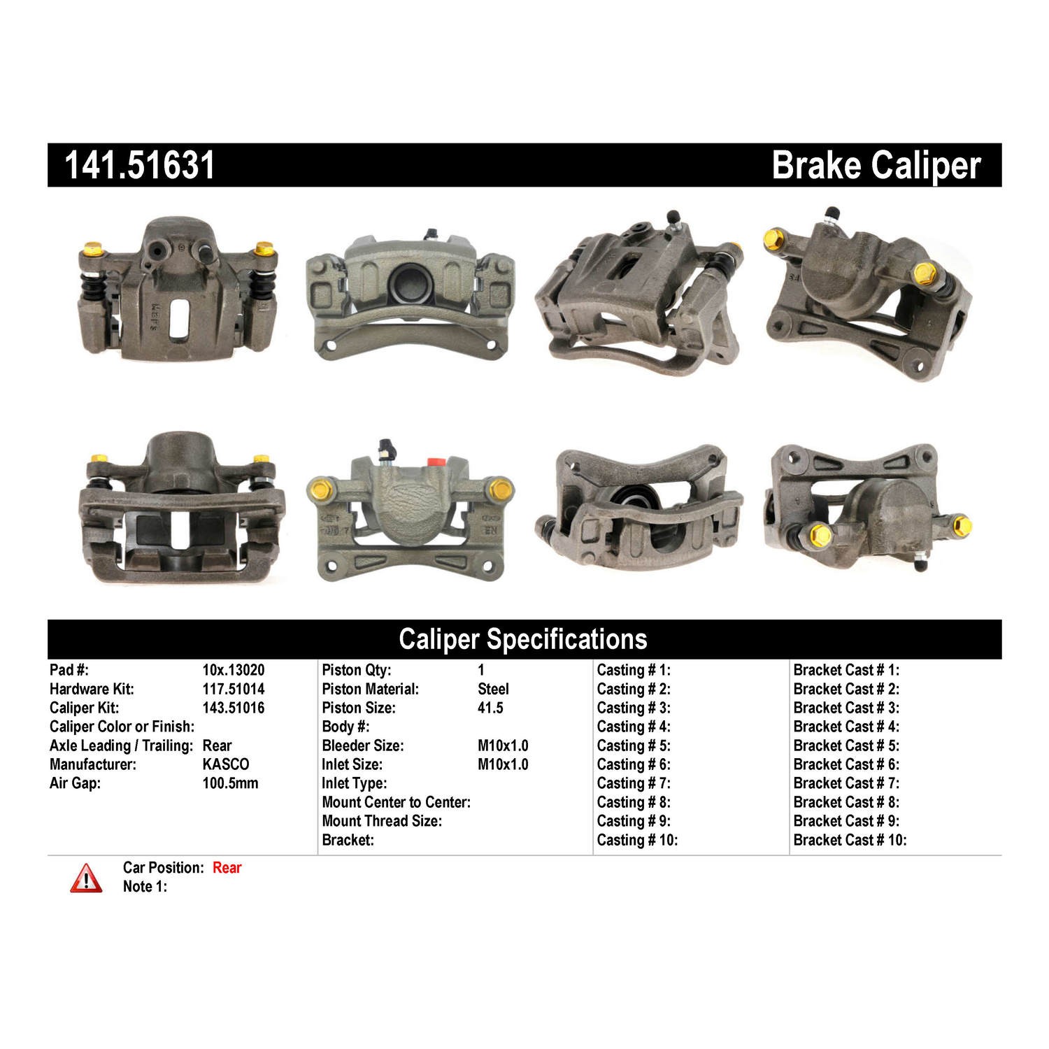 - Remanufactured to meet the most exacting standards for reliable performance; 100% pressure tested & inspected to ensure proper operation & fitment; Treated with anti-corrosion finish; Comes without brake pads; Includes hardware and brackets