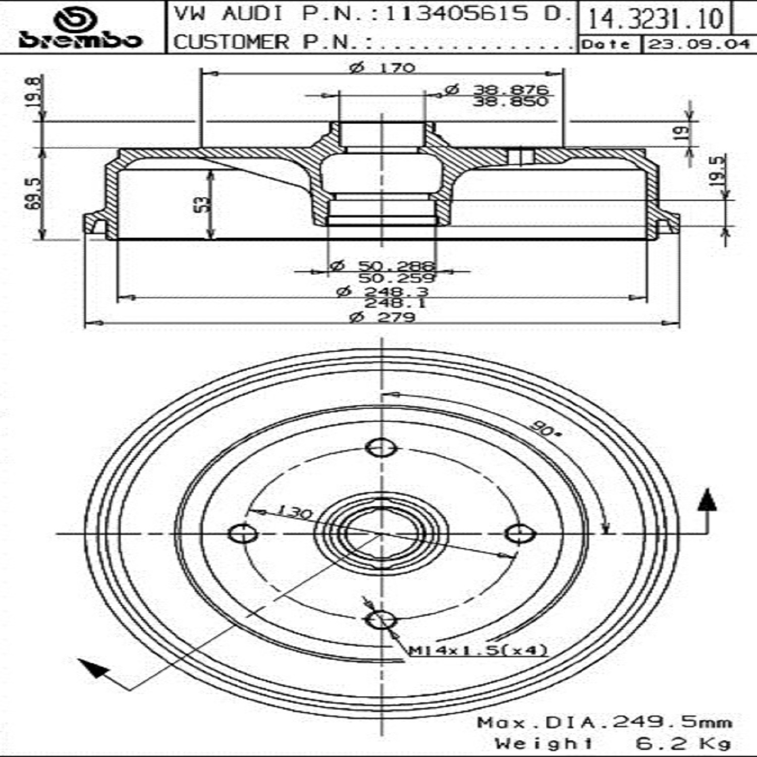 | Maximum Drum Diameter (MM) | 249.50 |