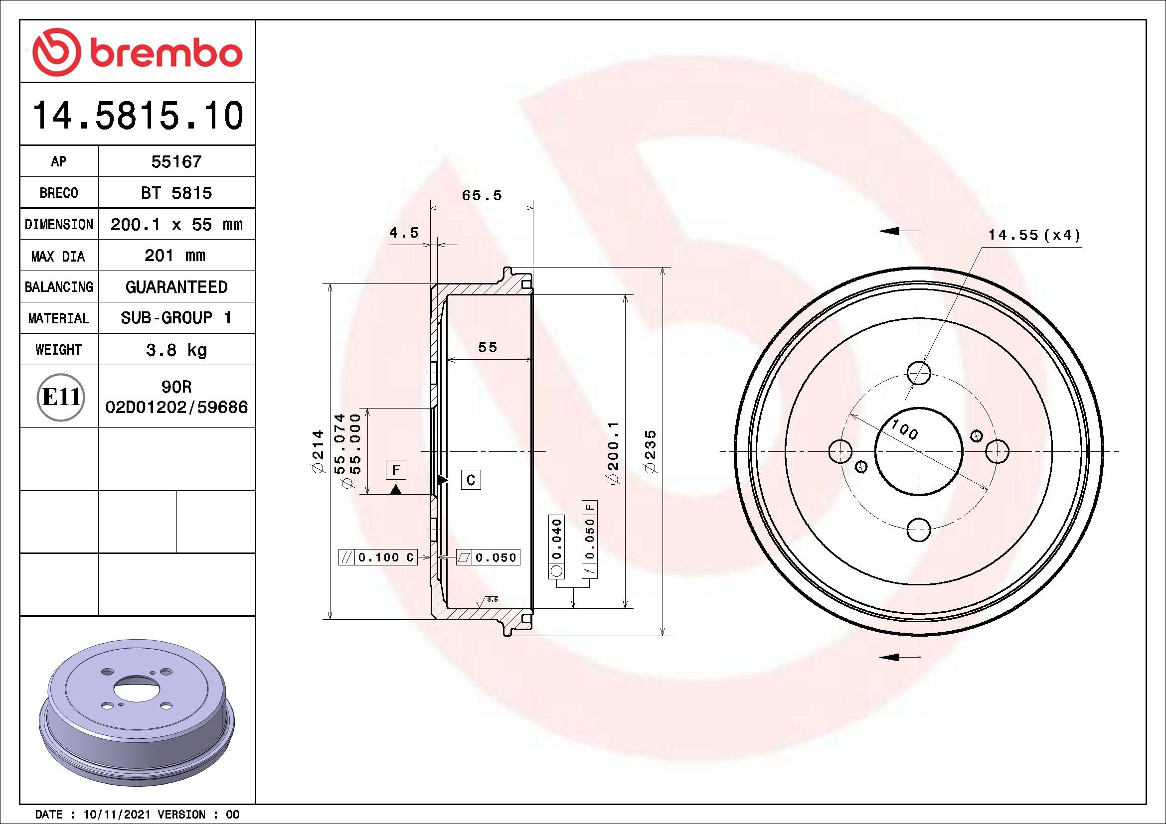| Center Hole Diameter (MM) | 55.00 |