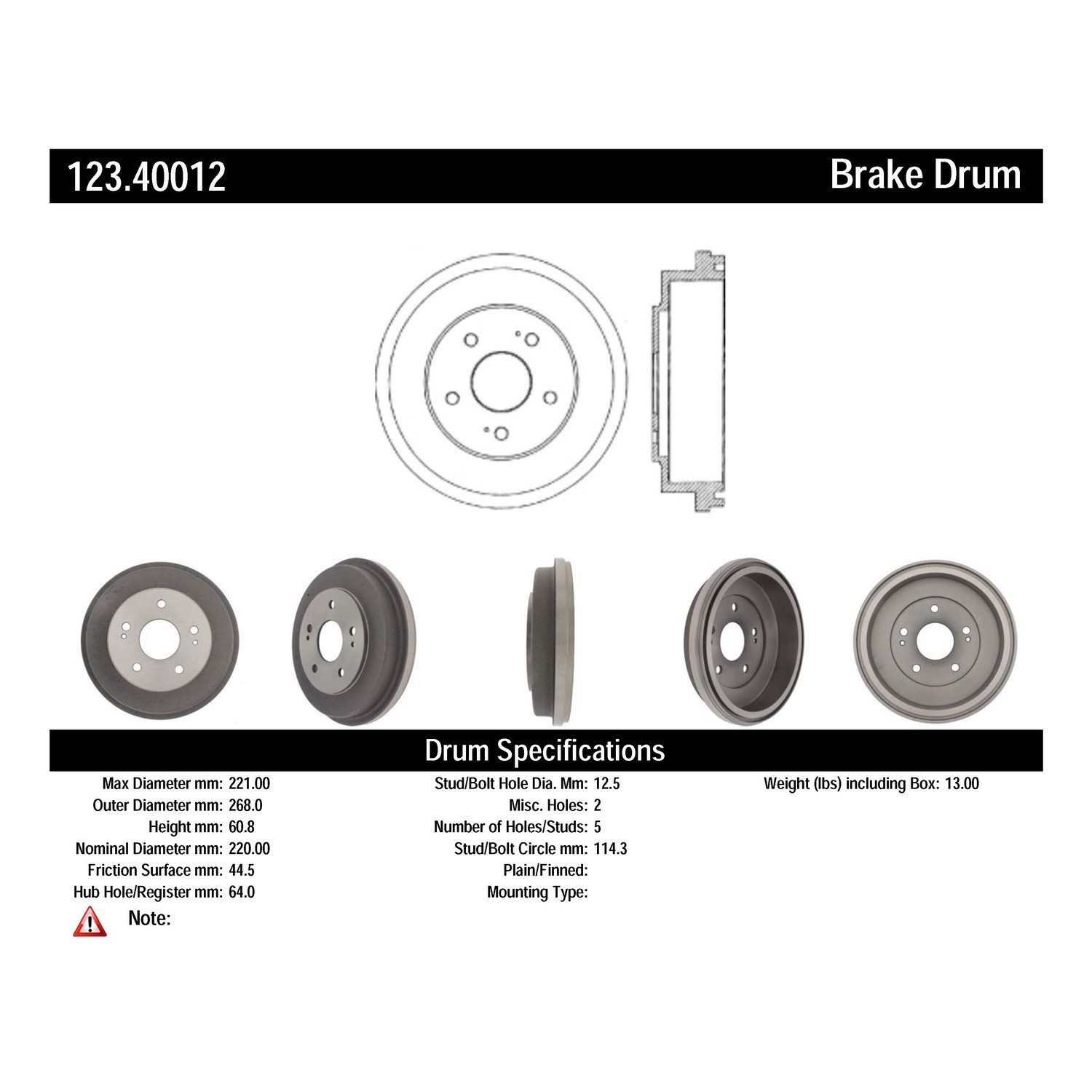 Centric® 123.40012 Brake Drum