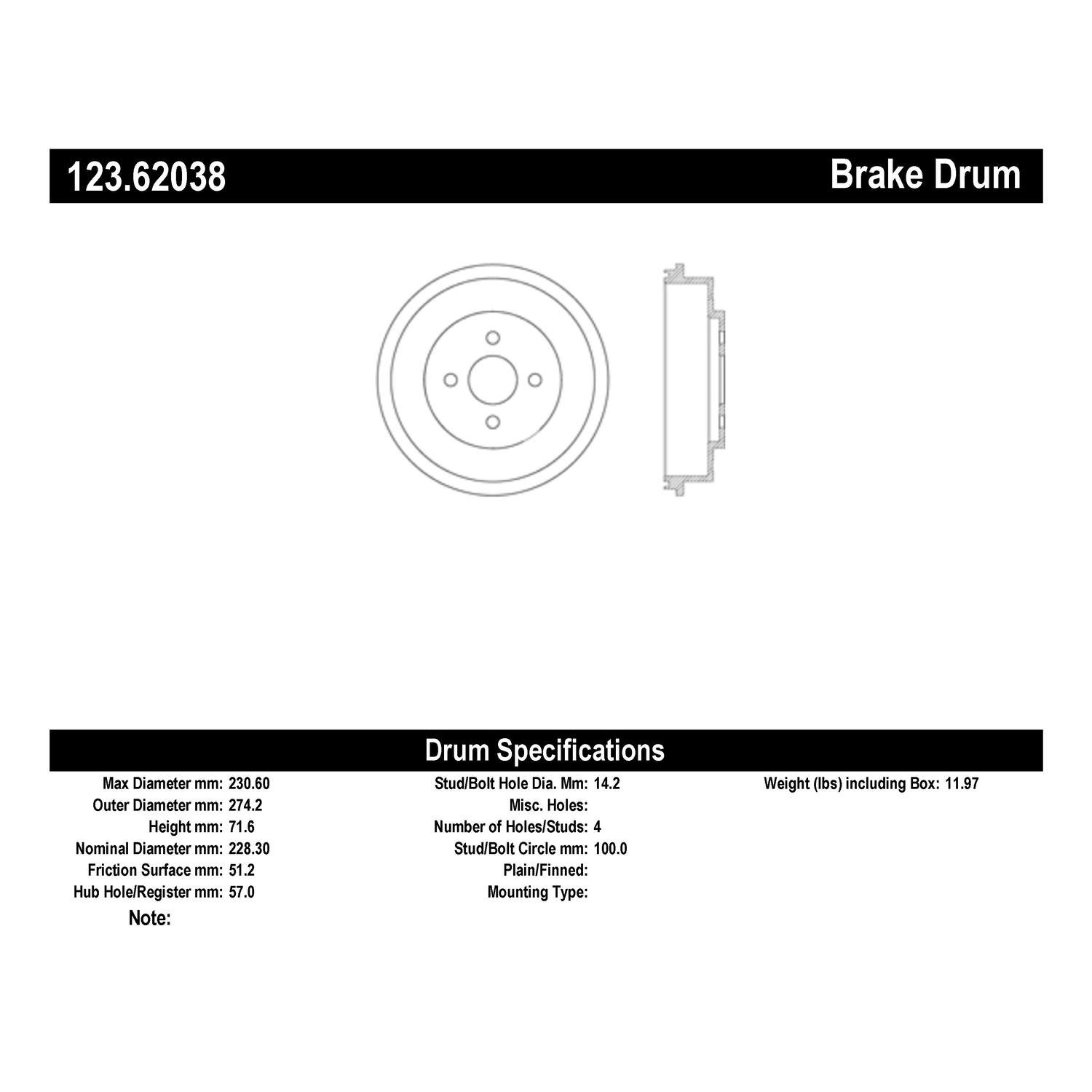 Centric® 123.62038 Brake Drum
