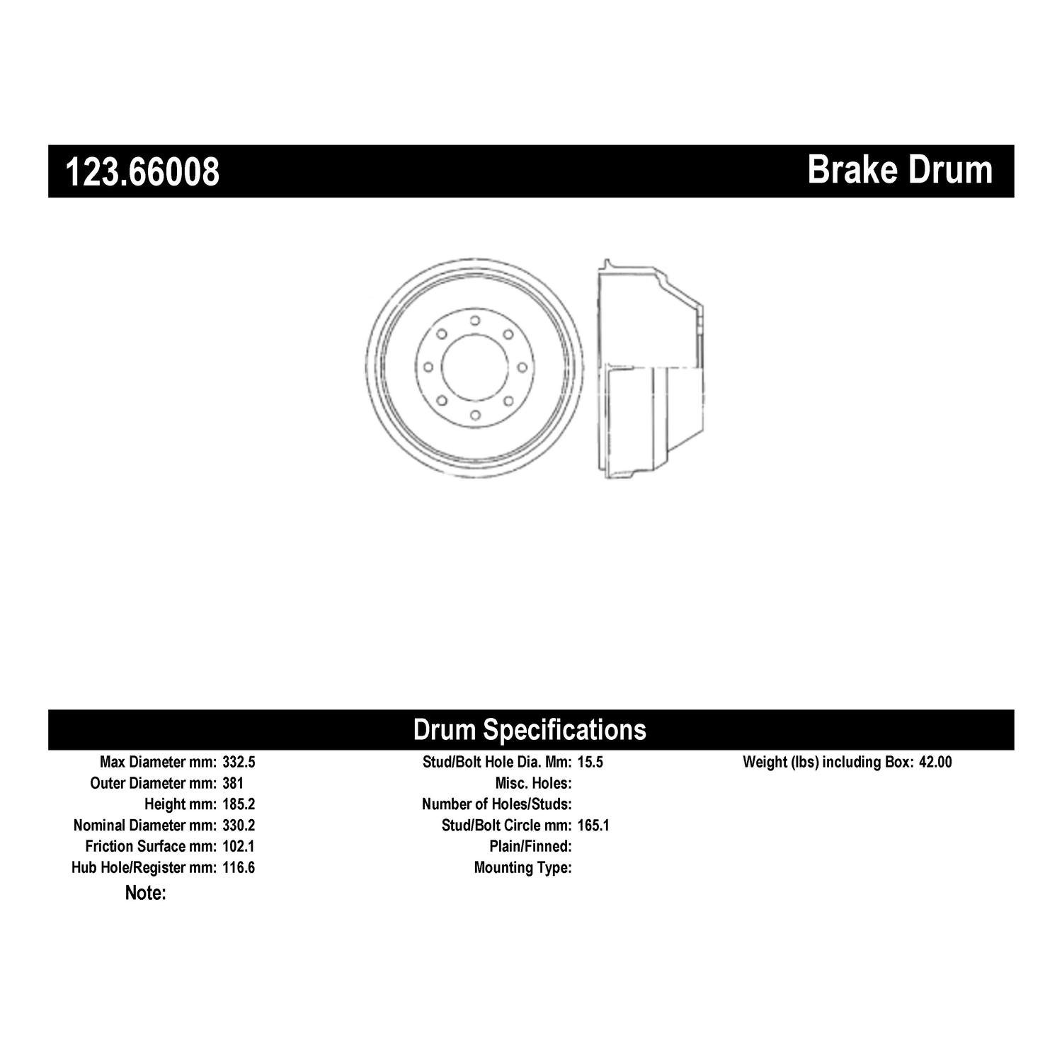 Centric® 123.66008 Brake Drum