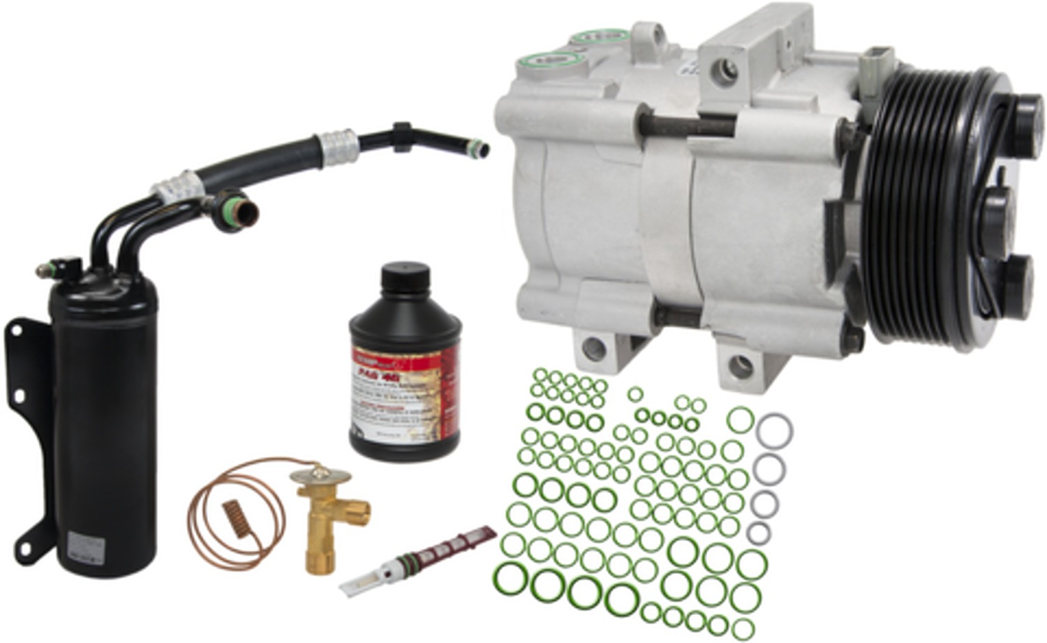 - Our A/C kits include the Compressor, Accumulator or Filter Drier, Expansion Device, Compressor Oil, and all necessary Gaskets and O-Rings