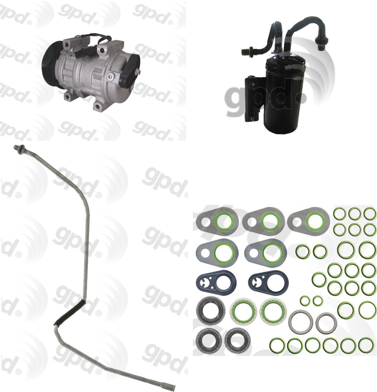 • gpd Compressor Kits include, Compressor, Accumulator/Filter Drier, Expansion Device, and a Rapid Seal Kit (unless otherwise noted). The compressor kit provides the components needed to complete the job right, the first time. All gpd Compressor kits are application specific.