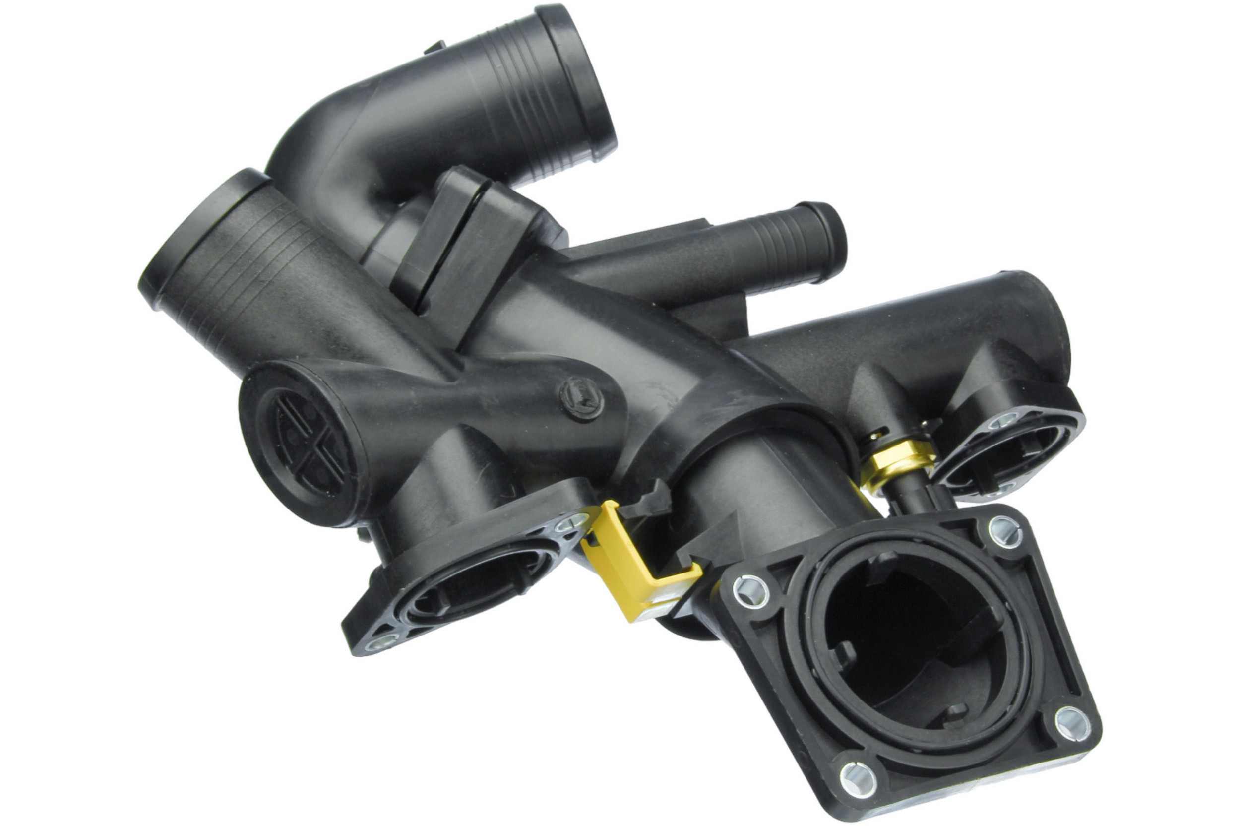 - Thermostat housing assembly is manufactured to factory housing dimensions for easy bolt-on installation and reliable hose connections