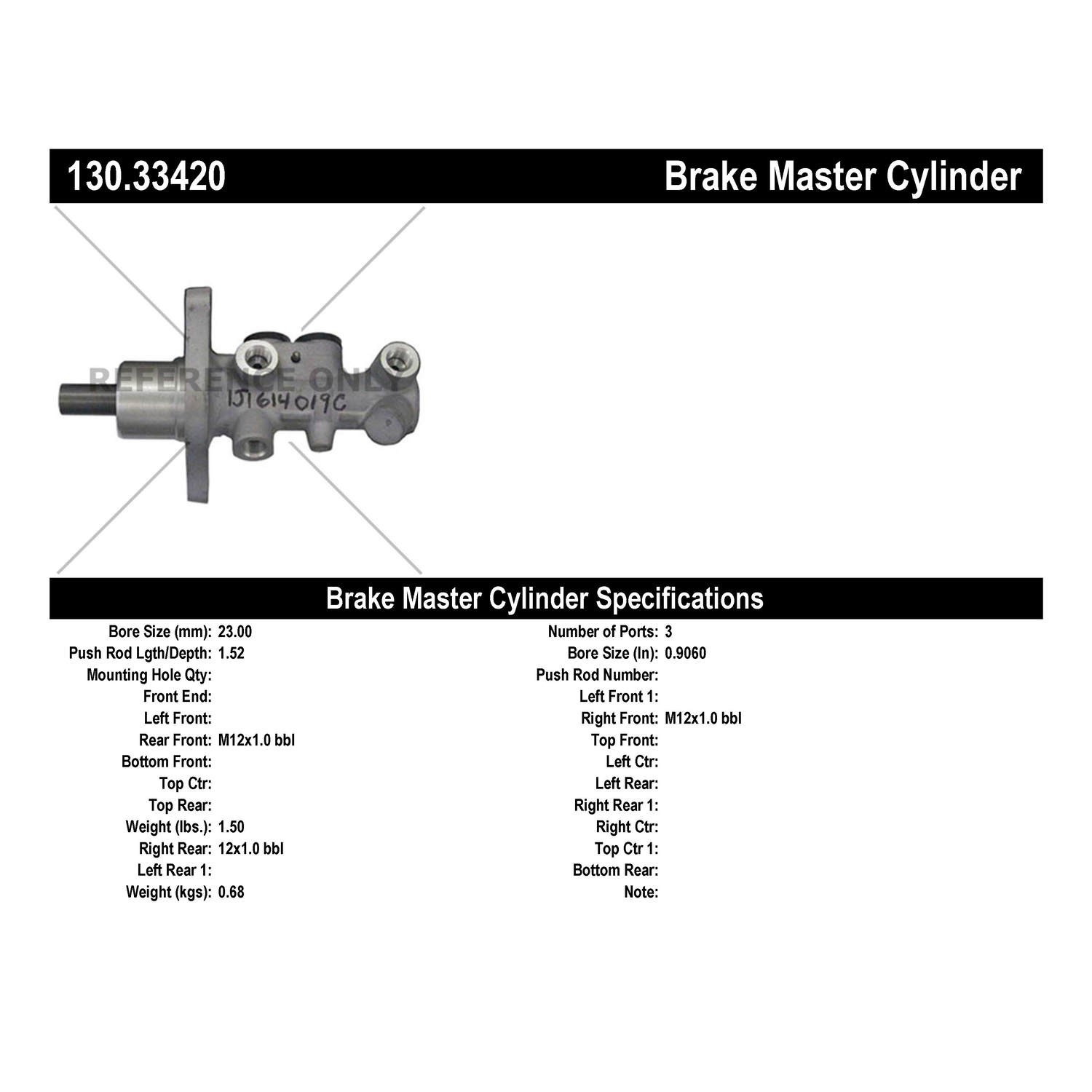 - Centric Premium Brake Master Cylinder