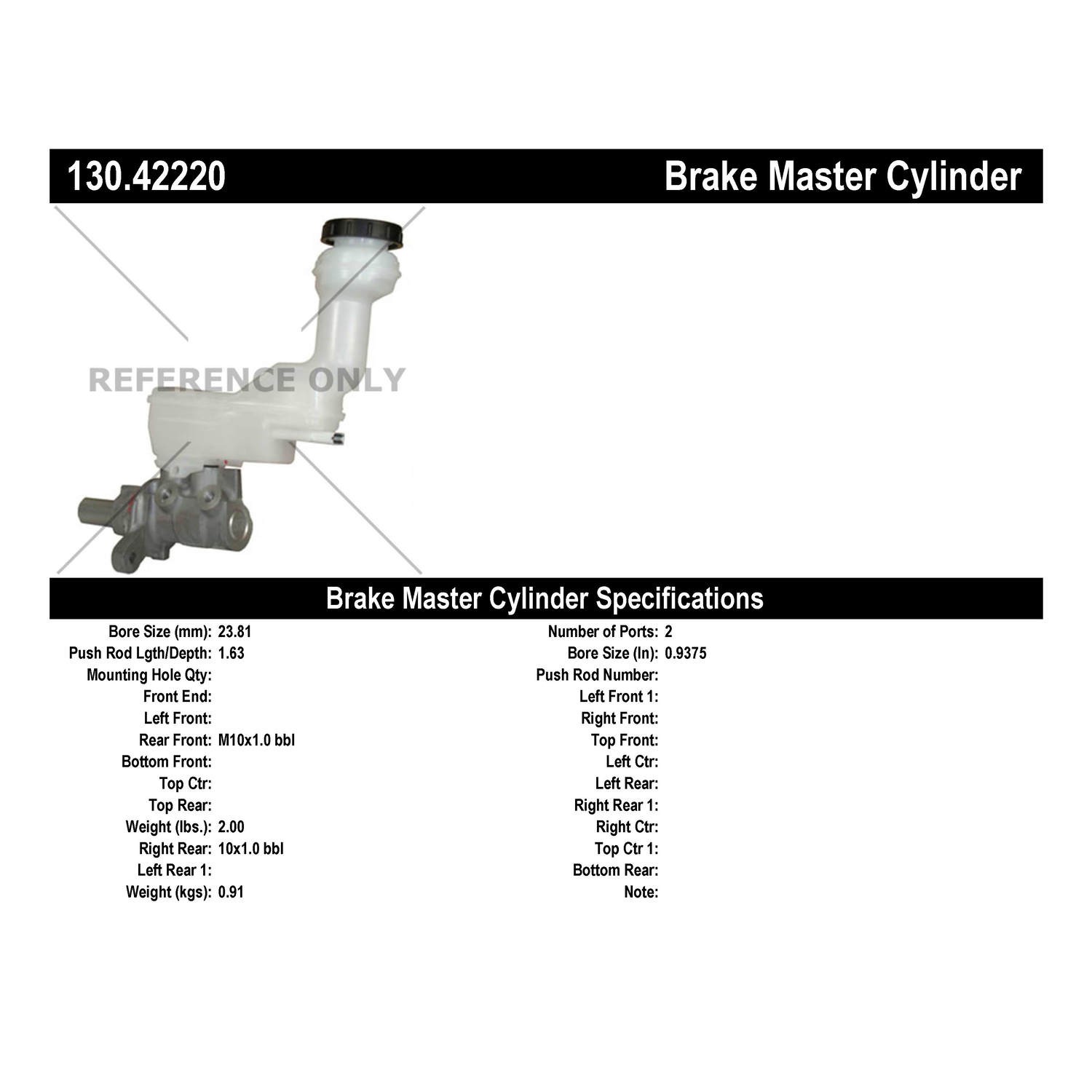 - Centric Premium Brake Master Cylinder