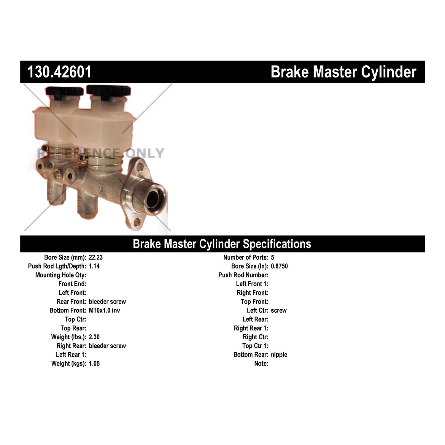 - Centric Premium Brake Master Cylinder