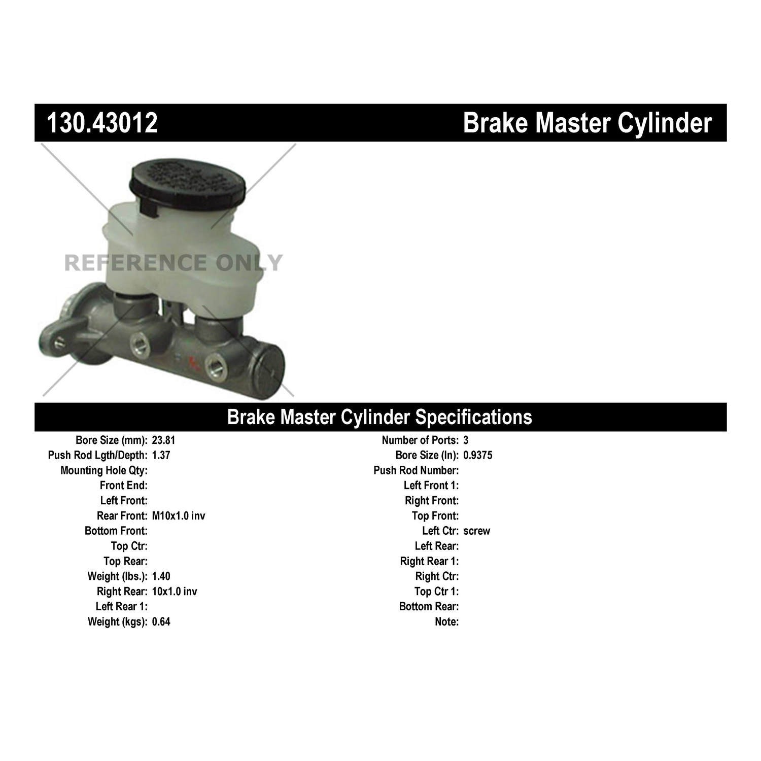 • Centric, CentricParts, Centric Parts, Centric Master Cylinder, Centric Parts Master Cylinder