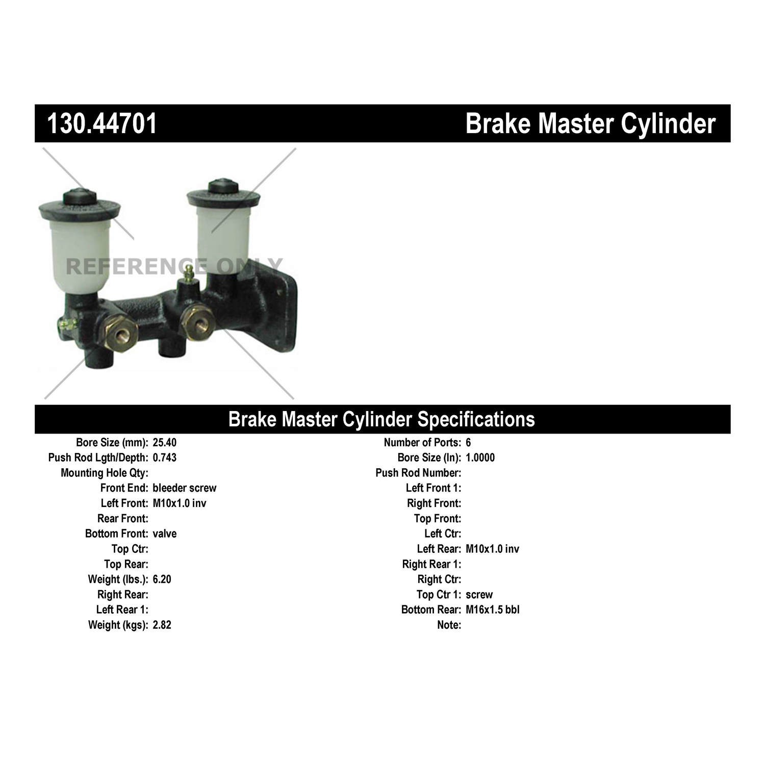• Centric Premium Brake Master Cylinder