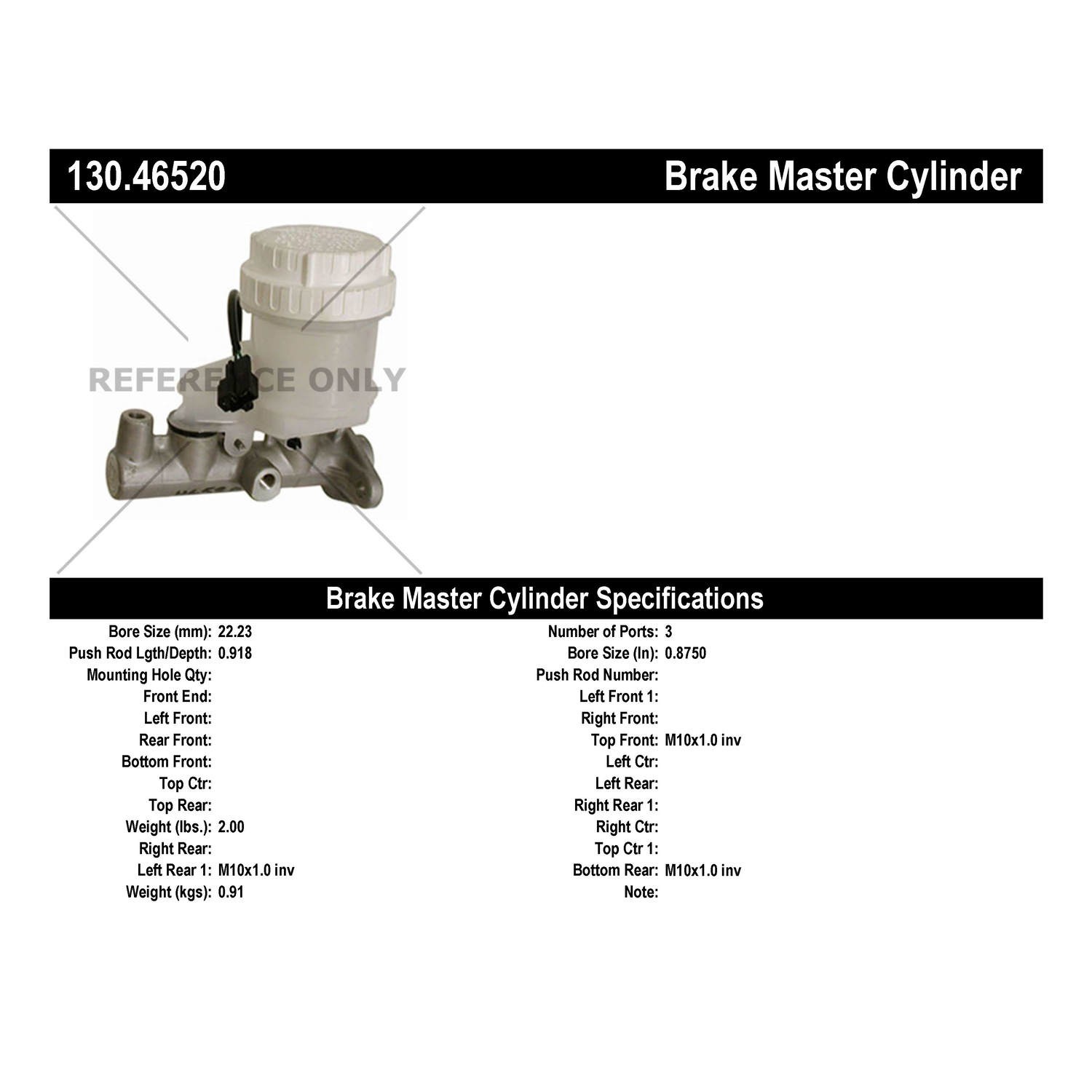 - Centric Premium Brake Master Cylinder