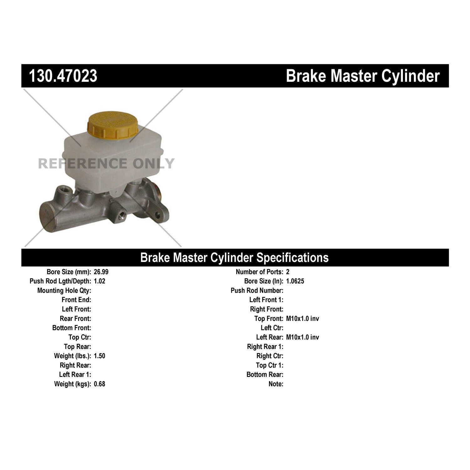 - Centric Premium Brake Master Cylinder