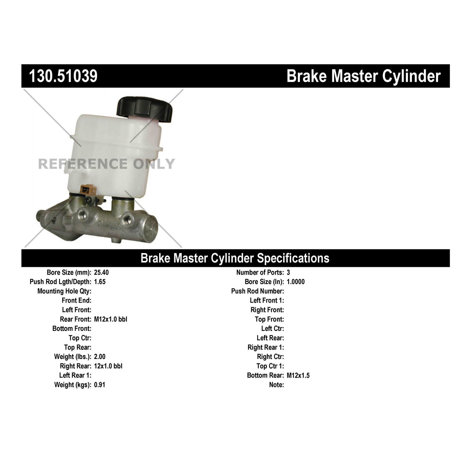 - Centric Premium Brake Master Cylinder