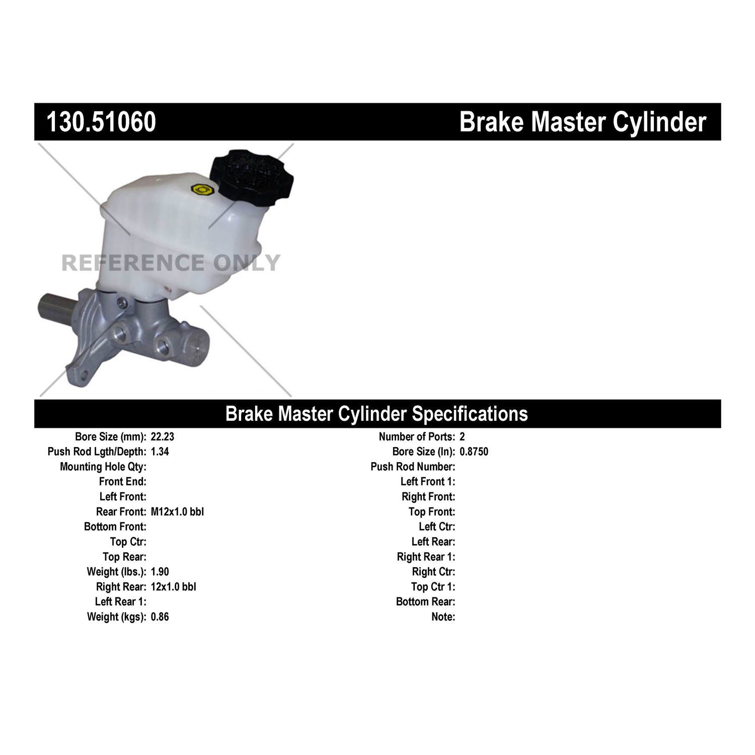 - Centric Premium Brake Master Cylinder