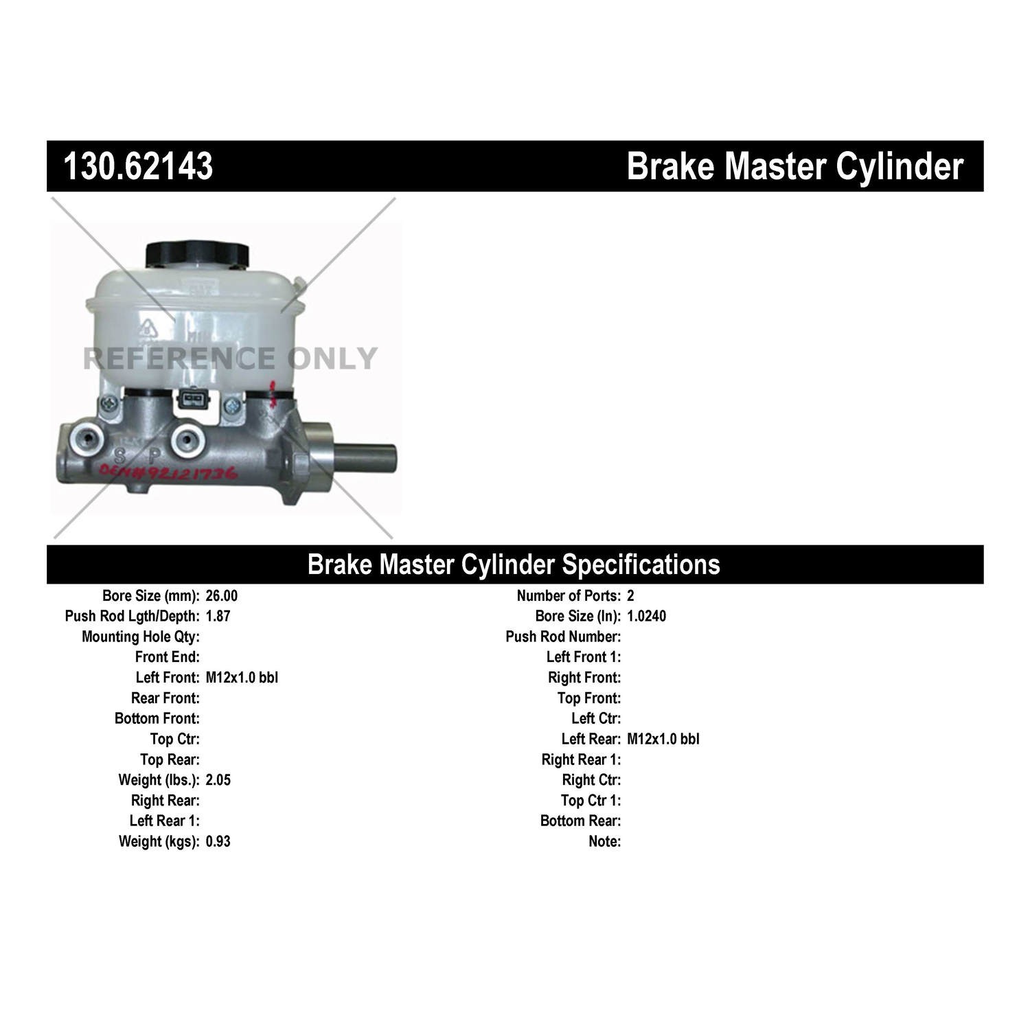 | Part Name | Brake Master Cylinder |