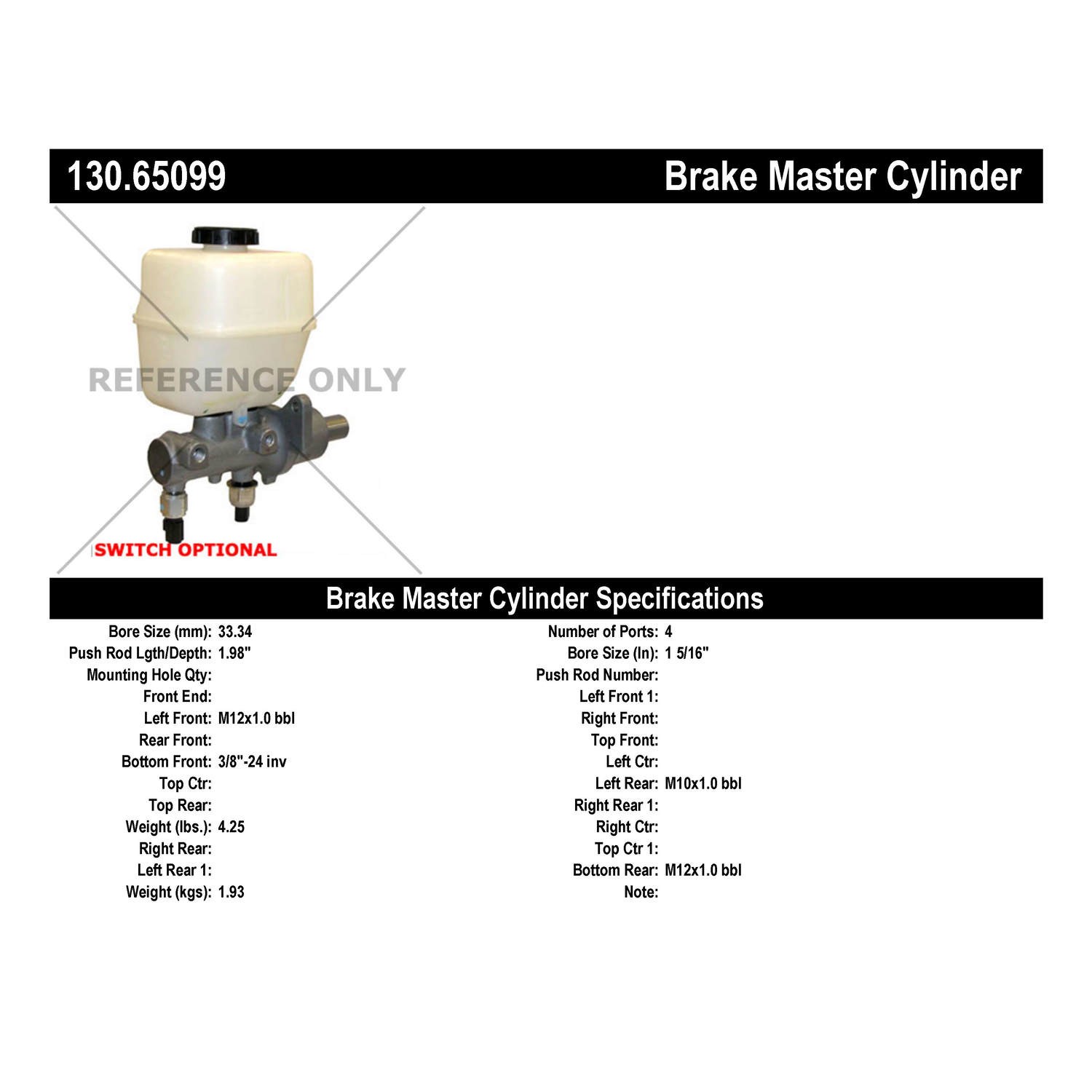 - Centric, CentricParts, Centric Parts, Centric Master Cylinder, Centric Parts Master Cylinder