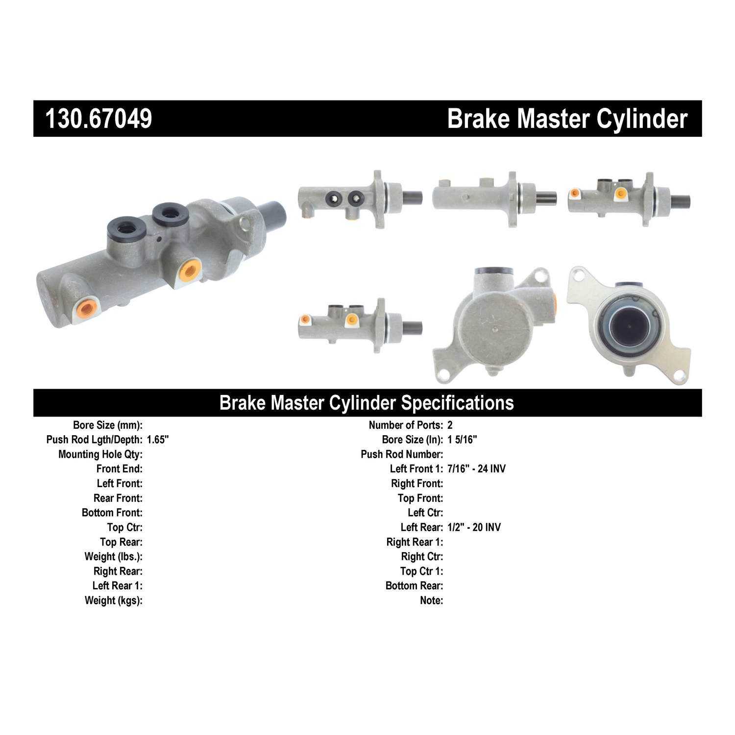 Centric® 130.67049 Brake Master Cylinder