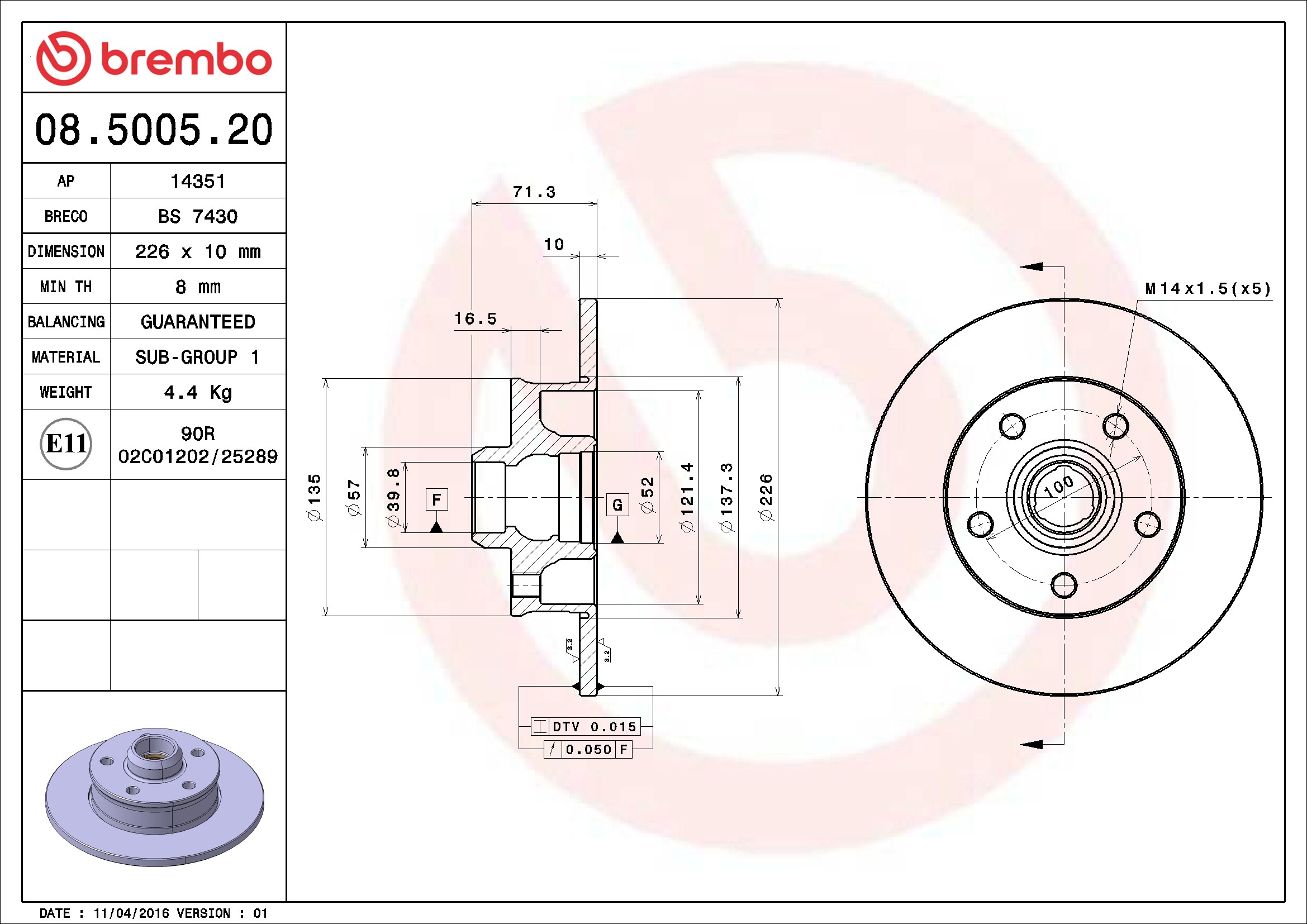Brembo® 08.5005.20 Disc Brake Rotor