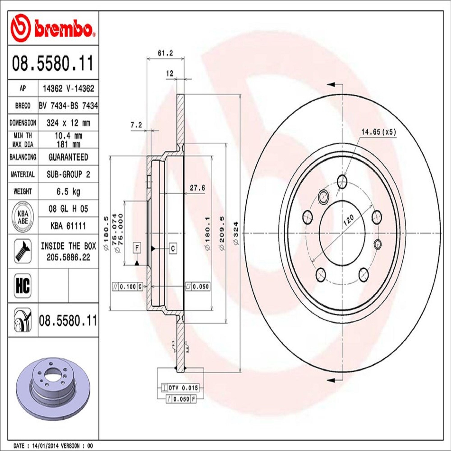 Brembo® 08.5580.11 Disc Brake Rotor