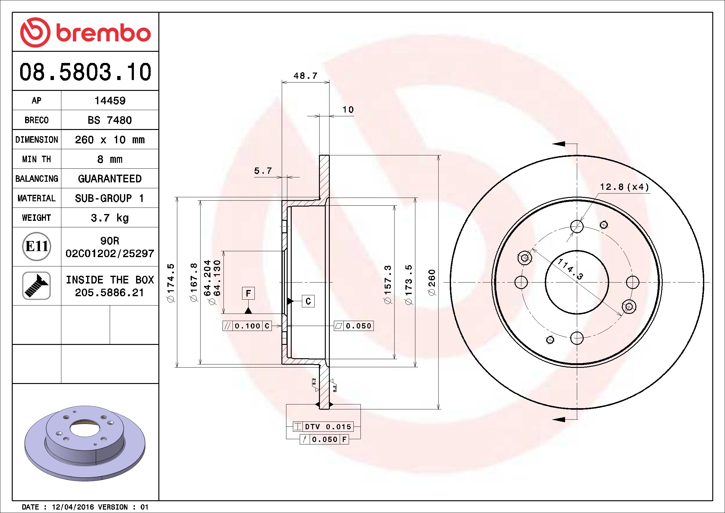 Brembo® 08.5803.10 Disc Brake Rotor