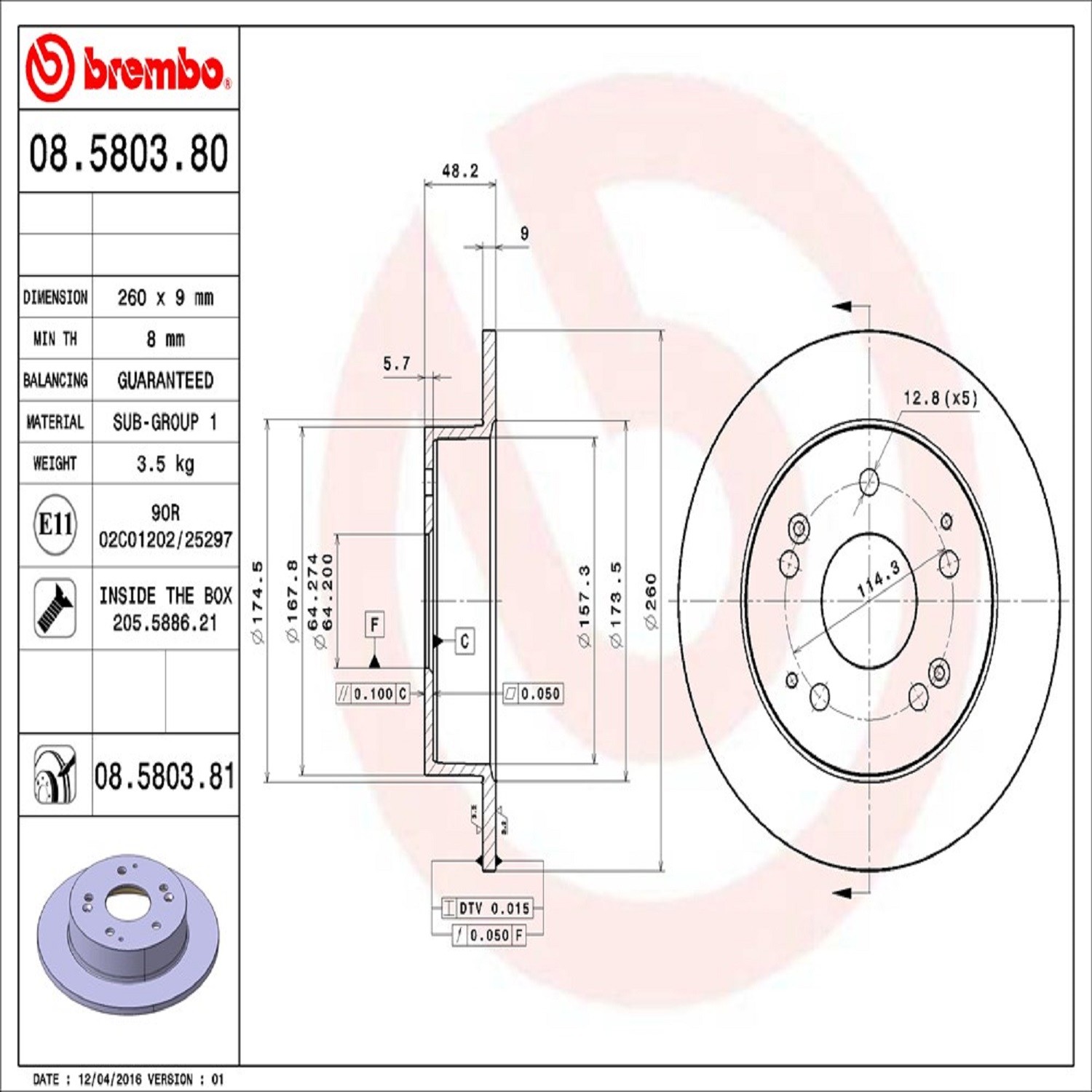 Brembo® 08.5803.81 Disc Brake Rotor