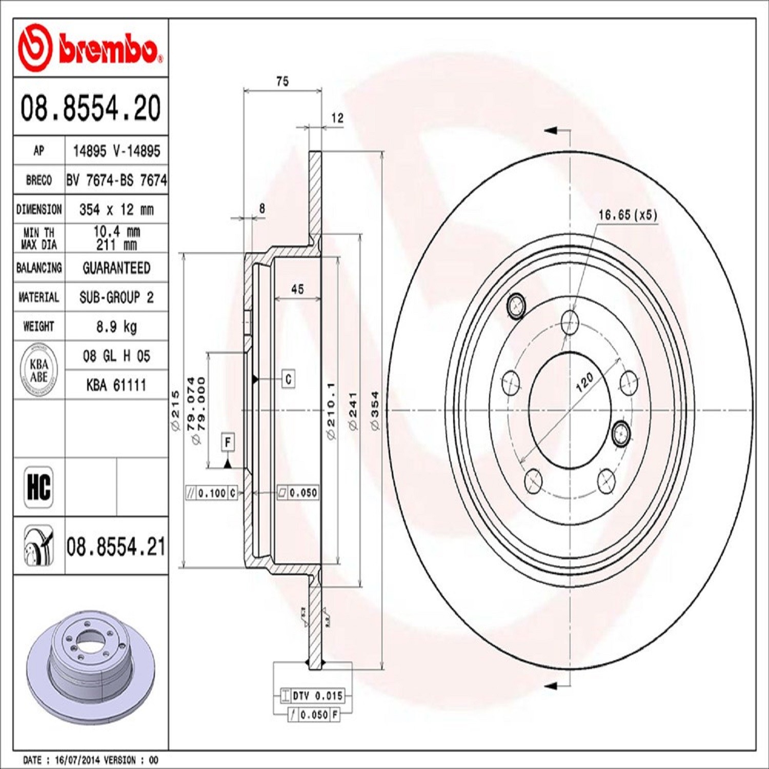 Brembo® 08.8554.21 Disc Brake Rotor