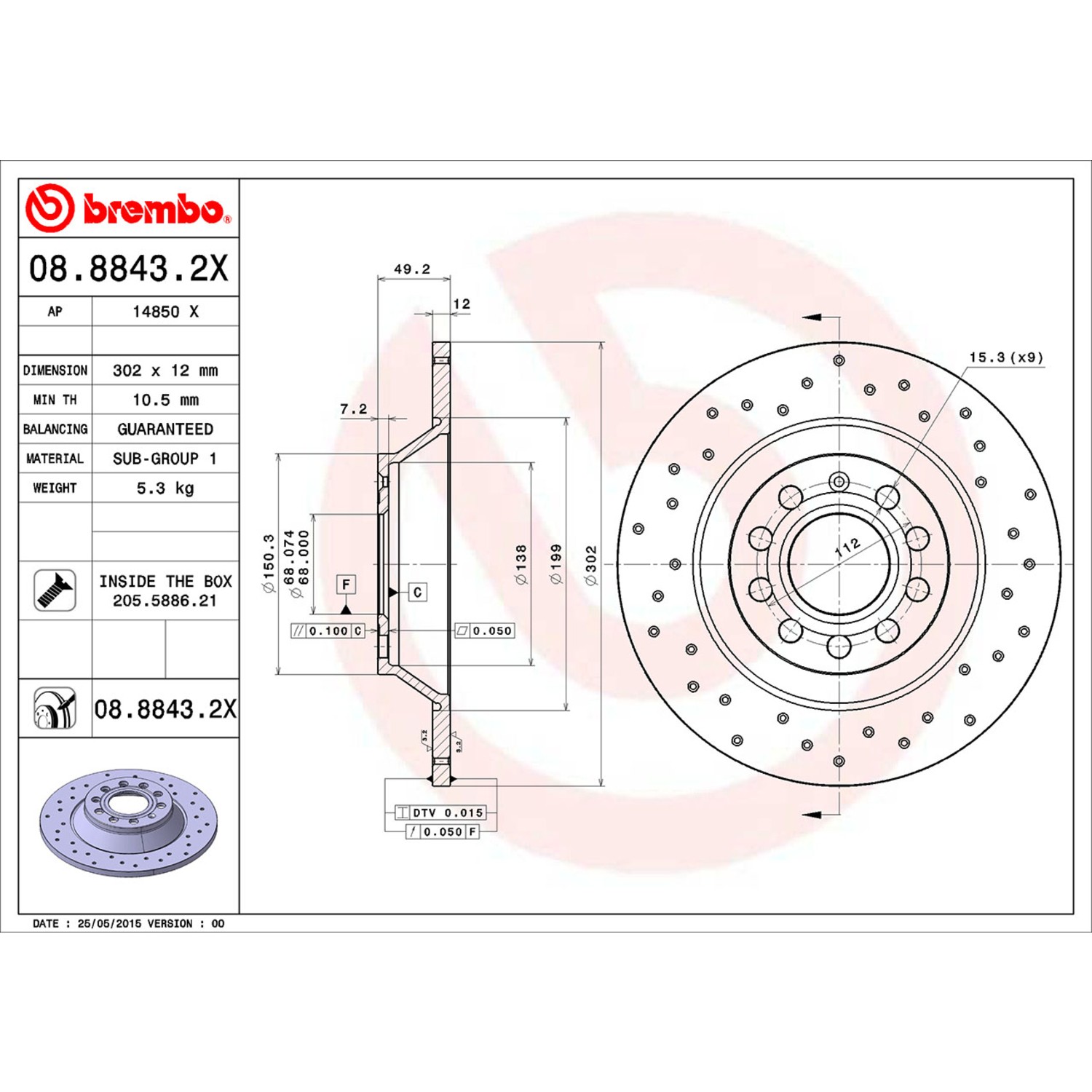 Brembo® 08.8843.2X Disc Brake Rotor