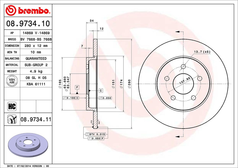Brembo® 08.9734.11 Disc Brake Rotor