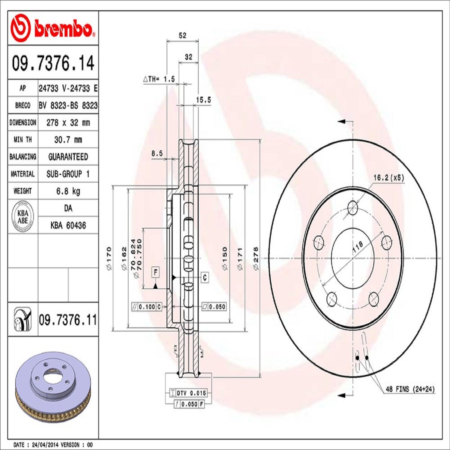 Brembo® 09.7376.11 Disc Brake Rotor