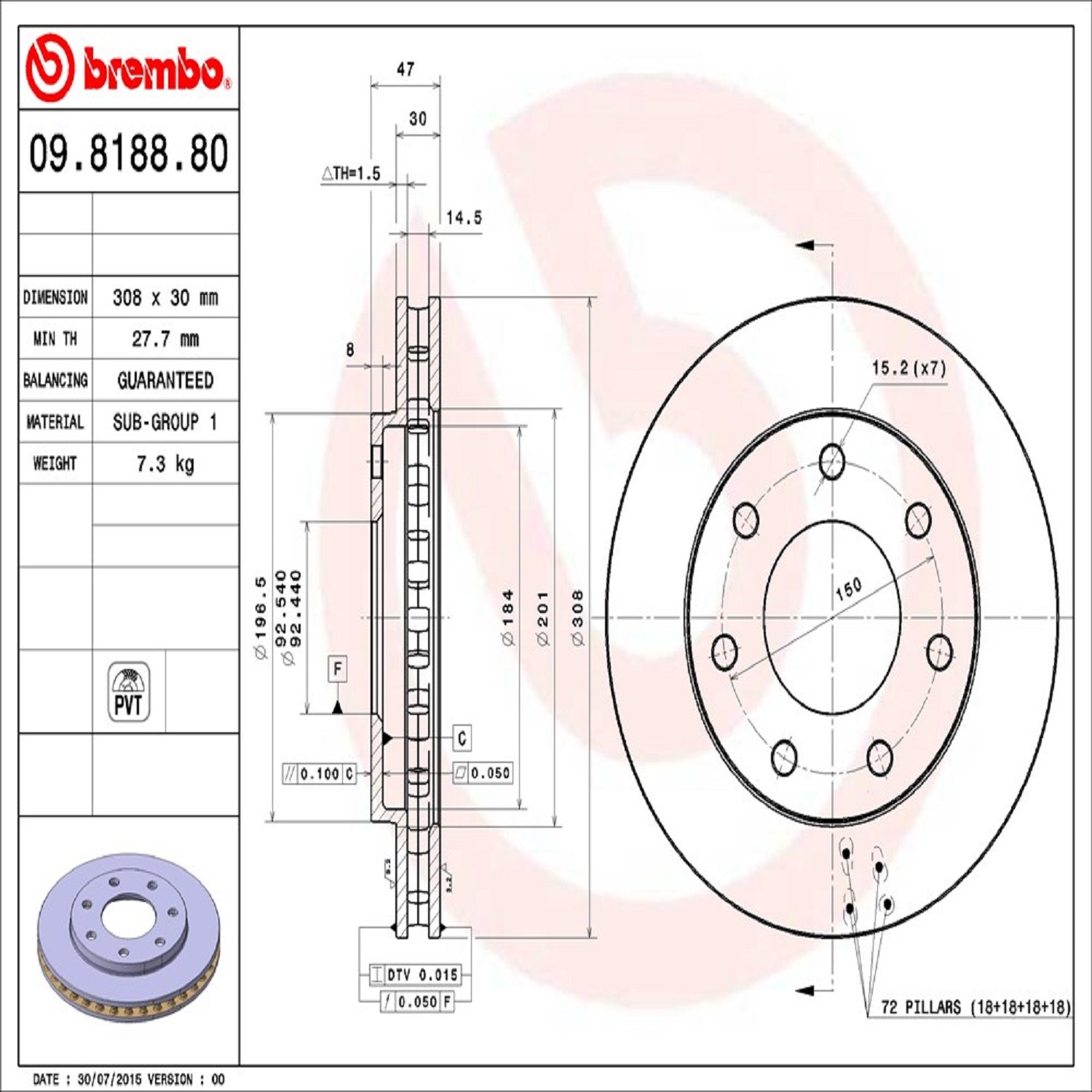 - Brembo's UV Coated rotors are developed as direct replacement that meets or exceeds OEM specifications. Environmentally friendly, the solvent free UV coating offers superior protection of the disc, including braking plate surfaces. High Carbon cast iron, where applicable, minimizes noise and vibration and provides maximum performance and enhanced driving comfort. Included with the UV Coated rotors is a fixing screw kit with all the necessary hardware for simple and worry free installation. New intelligent marking location show part number & the minimum thickness. In order to optimize and restore braking performance rotors and pads should be replaced together. Pair your UV Coated rotor with Brembo’s NAO/Ceramic or Low Met brake pad formulations. Brembo, the most trusted brand in braking.