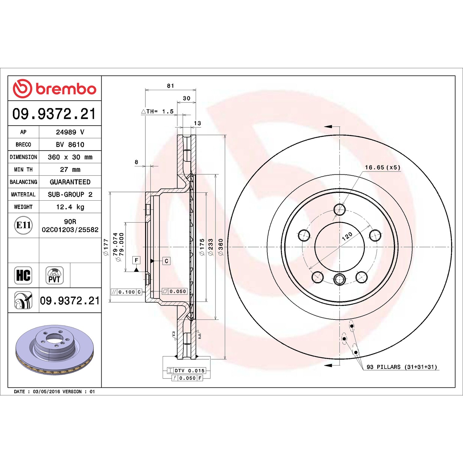 - Brembo's UV Coated rotors are developed as direct replacement that meets or exceeds OEM specifications. Environmentally friendly, the solvent free UV coating offers superior protection of the disc, including braking plate surfaces. High Carbon cast iron, where applicable, minimizes noise and vibration and provides maximum performance and enhanced driving comfort. Included with the UV Coated rotors is a fixing screw kit with all the necessary hardware for simple and worry free installation. New intelligent marking location show part number & the minimum thickness. In order to optimize and restore braking performance rotors and pads should be replaced together. Pair your UV Coated rotor with Brembo’s NAO/Ceramic or Low Met brake pad formulations. Brembo, the most trusted brand in braking.
