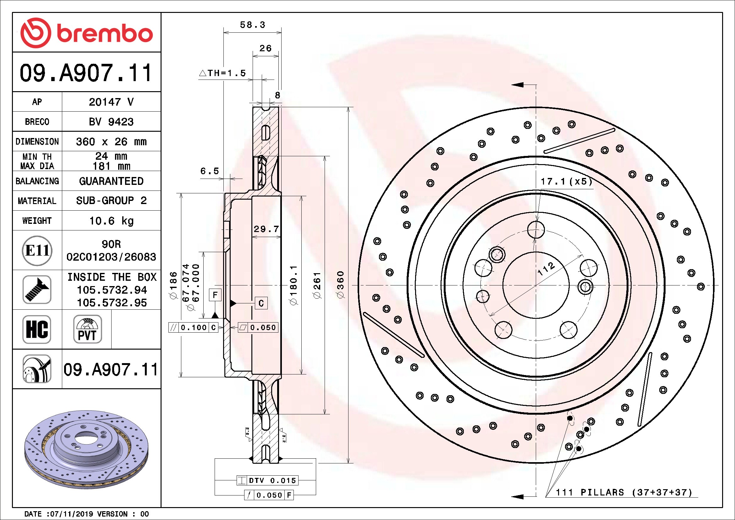 Brembo® 09.A907.11 Disc Brake Rotor