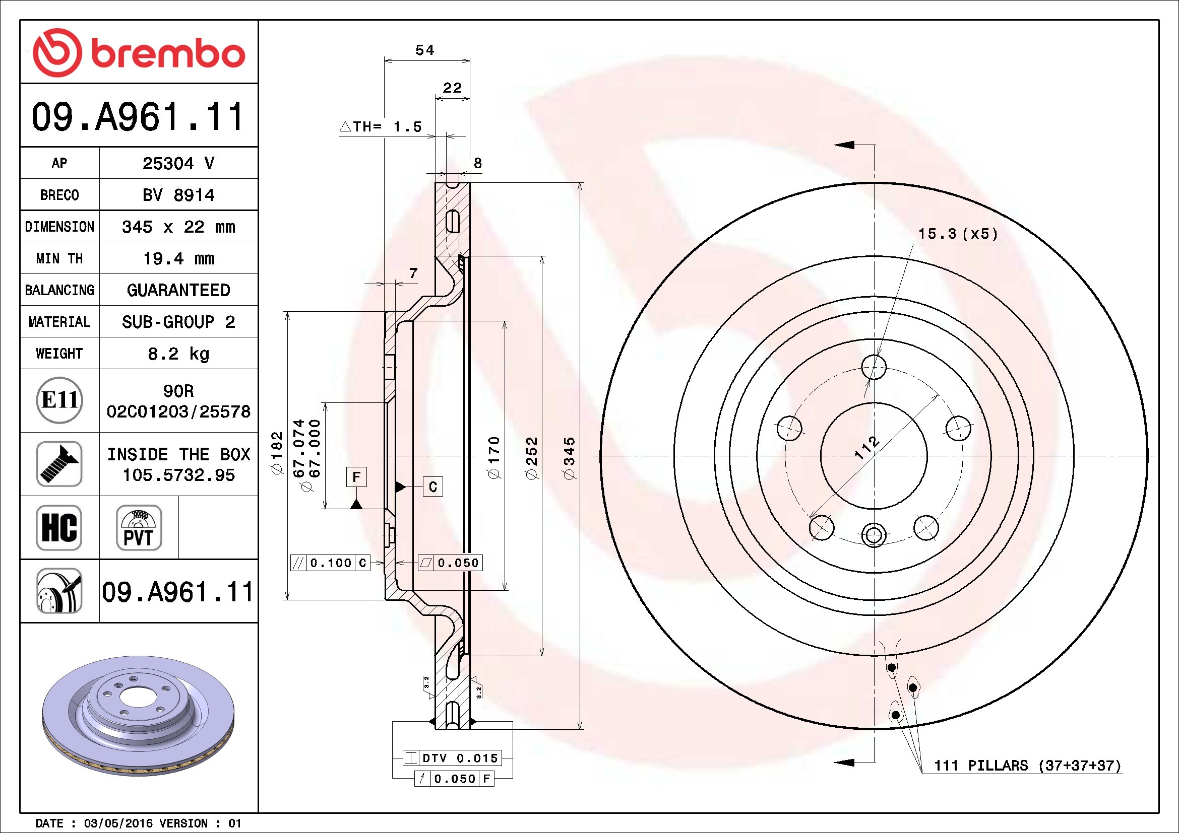 | Part | # 09.A961.11 |