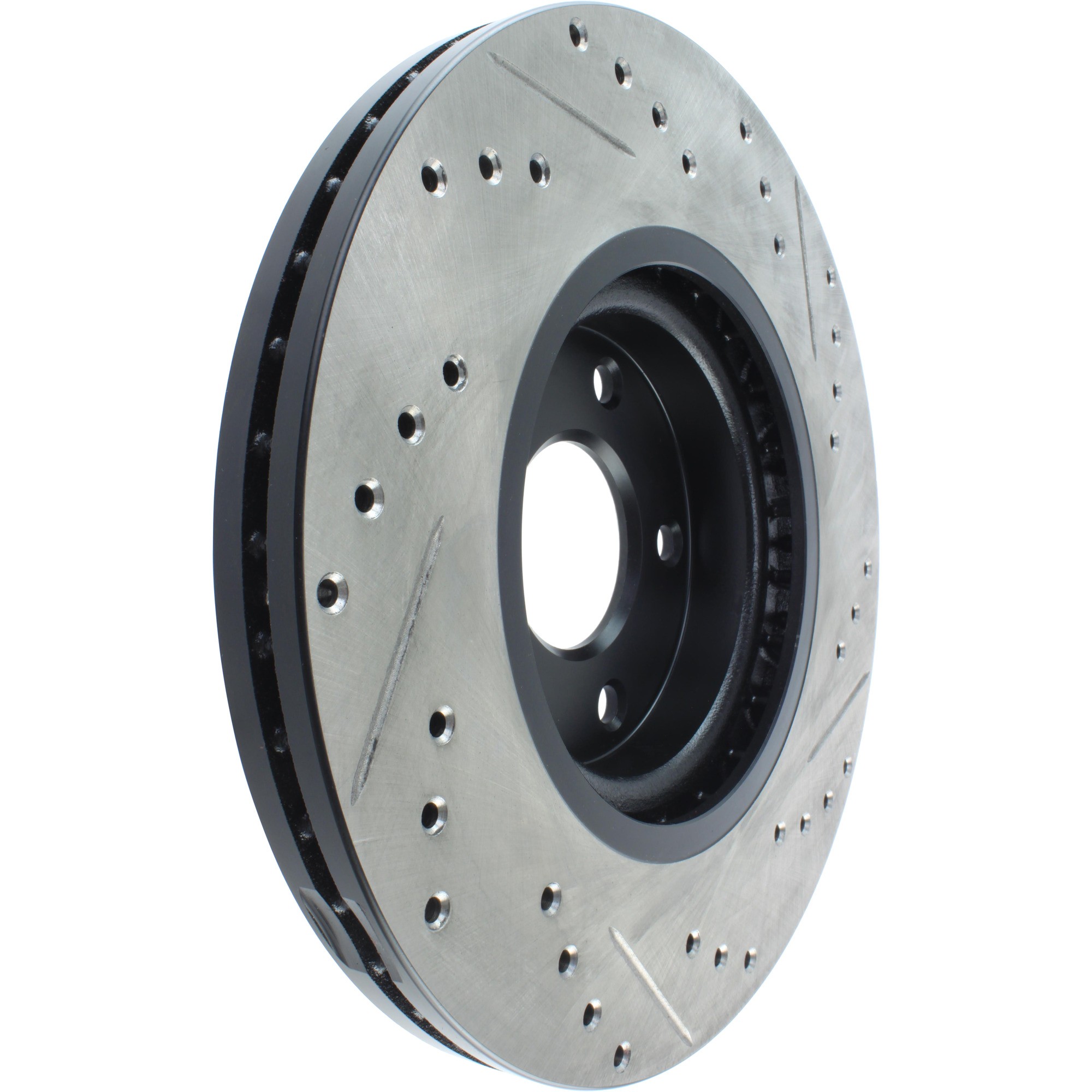 - StopTech Drilled and Slotted Sport Rotors are 1-piece direct replacement brake discs for factory brake systems and stock calipers that look great behind your wheels – and offer significantly improved braking performance. The unique cross-drilling and slotting aids with heat and brake dust dispersal, prevents glazing of the pads, adds bite and improves wet and dry braking performance. Built to last, the black e-coating provides protection from corrosion and the high carbon metallurgy (in most applications) offers quieter operation, better crack resistance and increased performance.