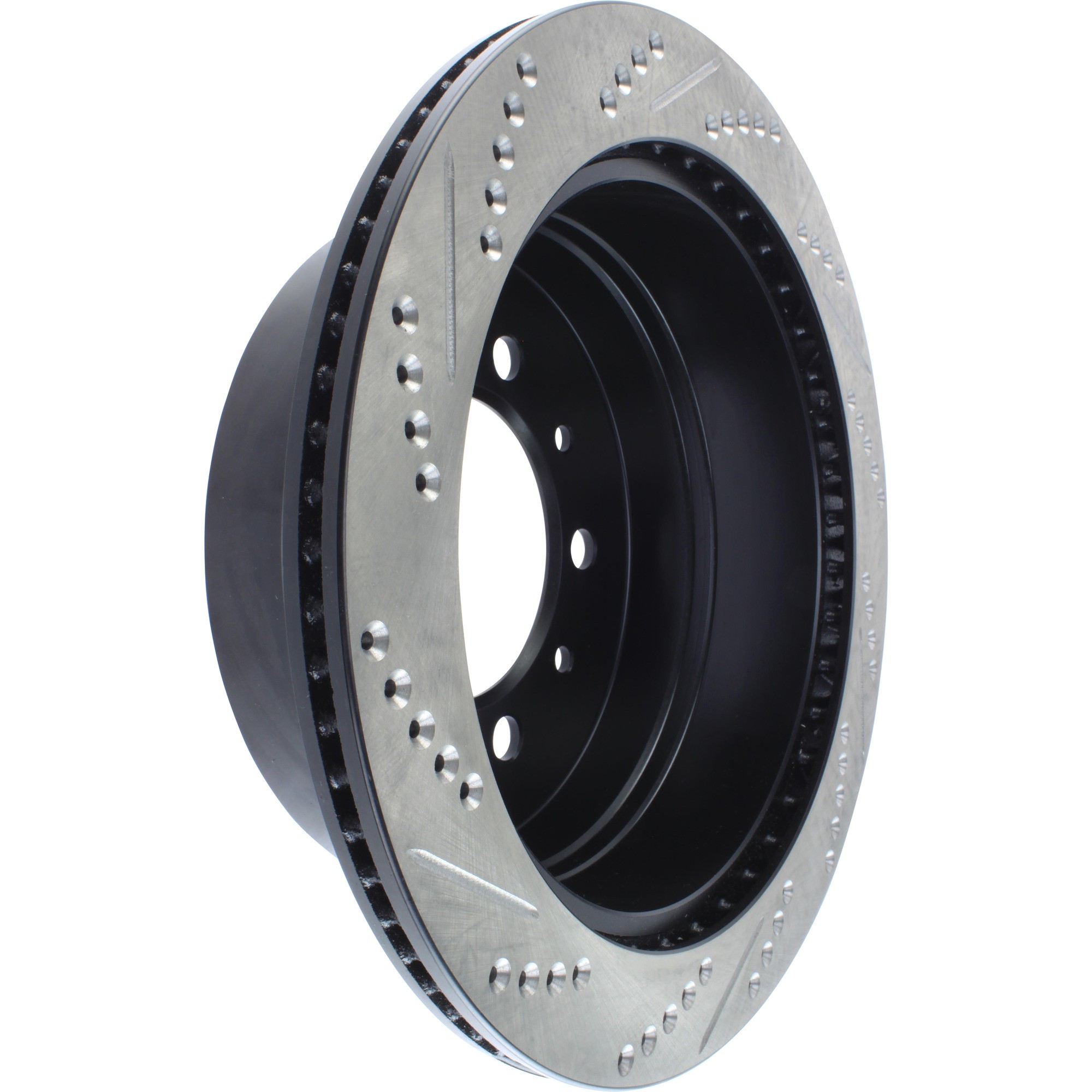 - StopTech Drilled and Slotted Sport Rotors are 1-piece direct replacement brake discs for factory brake systems and stock calipers that look great behind your wheels – and offer significantly improved braking performance. The unique cross-drilling and slotting aids with heat and brake dust dispersal, prevents glazing of the pads, adds bite and improves wet and dry braking performance. Built to last, the black e-coating provides protection from corrosion and the high carbon metallurgy (in most applications) offers quieter operation, better crack resistance and increased performance.