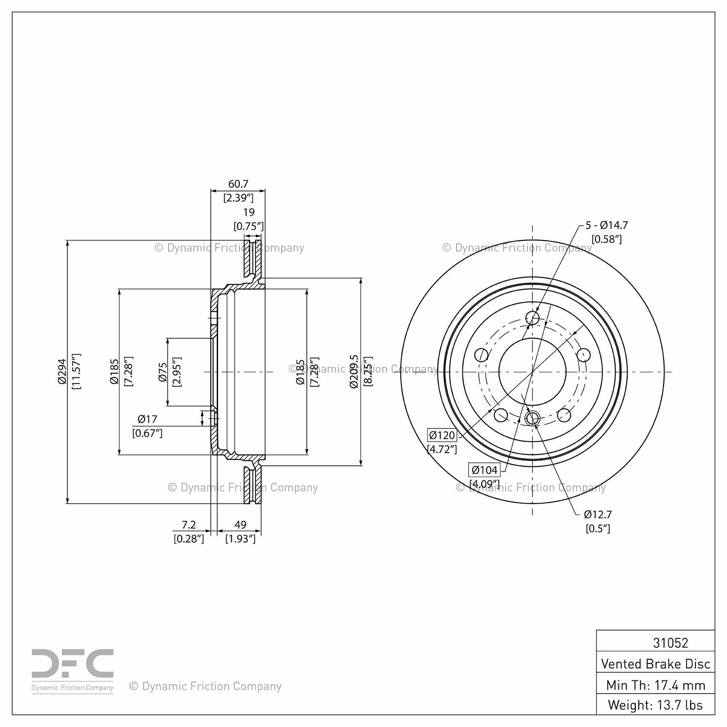 Dynamic Friction® 600-31052 Disc Brake Rotor
