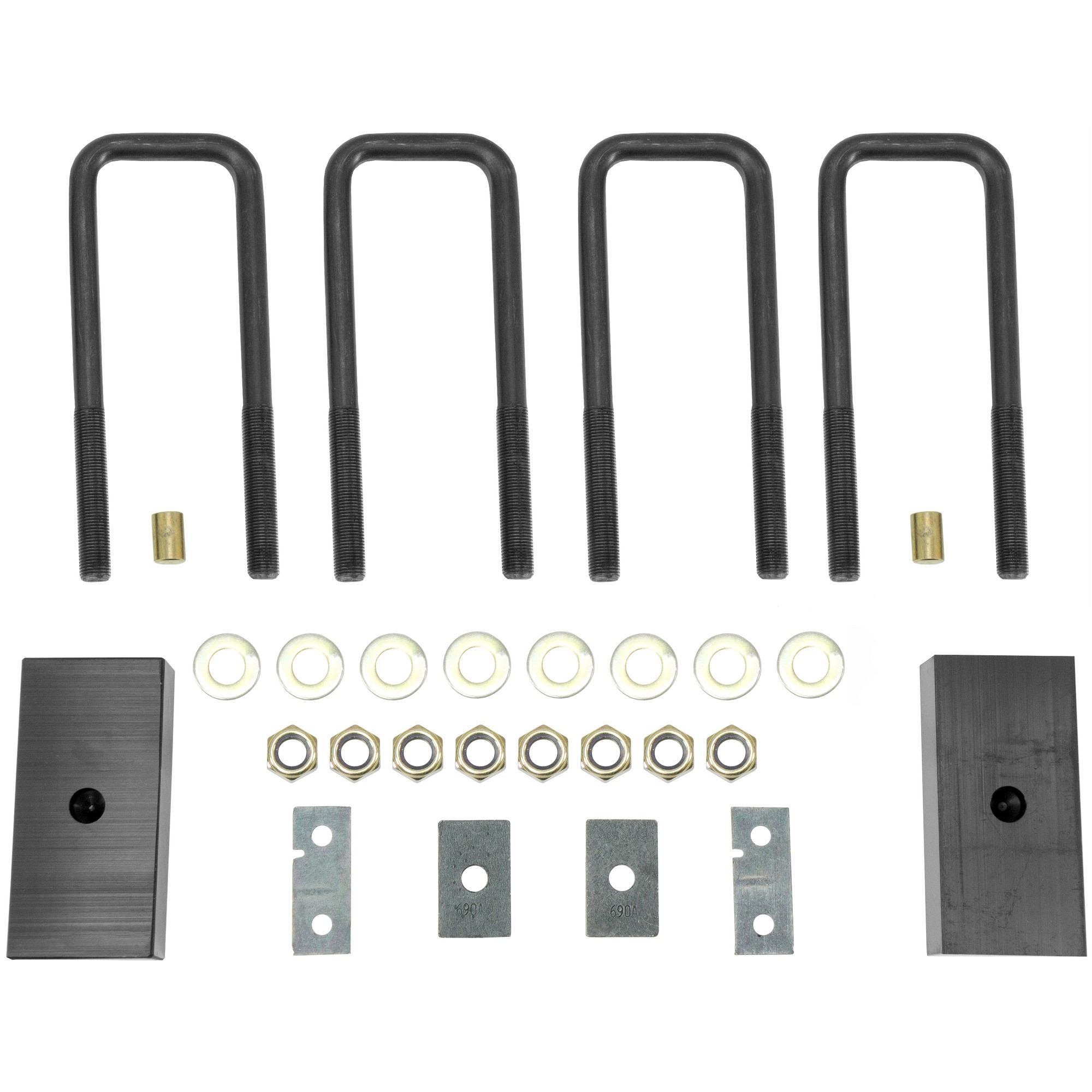 - EASY TO INSTALL -- Kit includes two rear blocks, four coated U-bolts and eight nuts that install easily