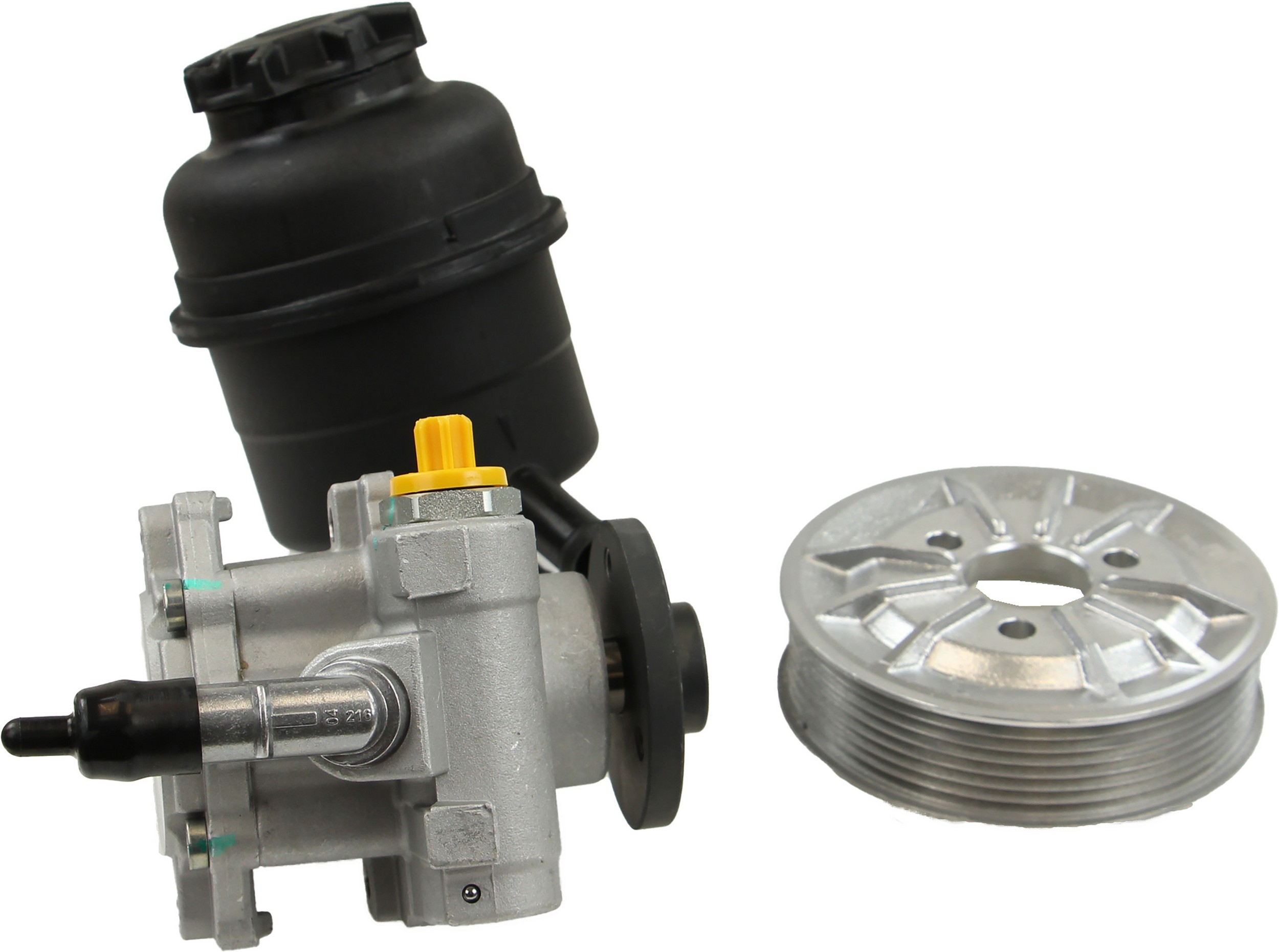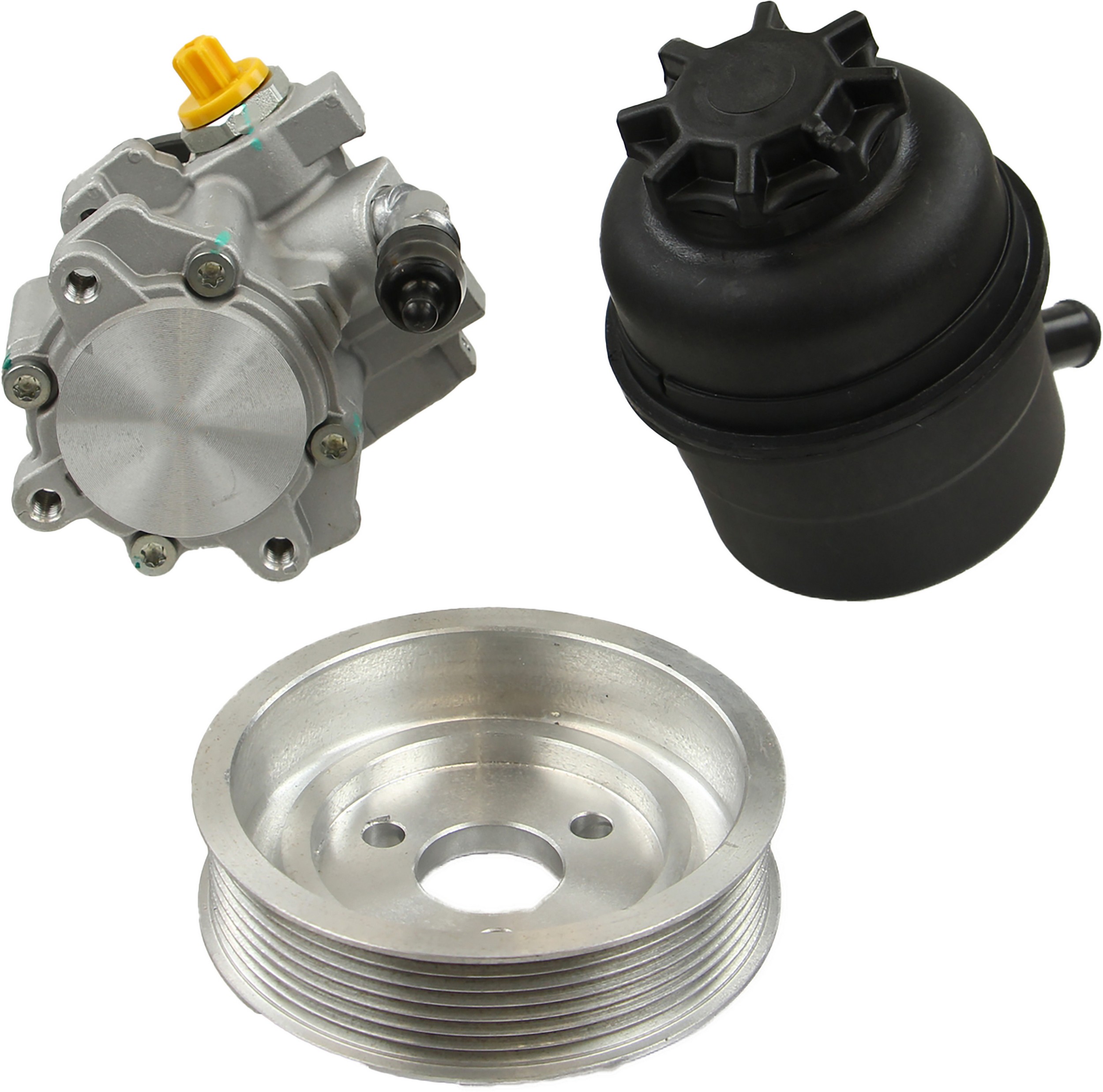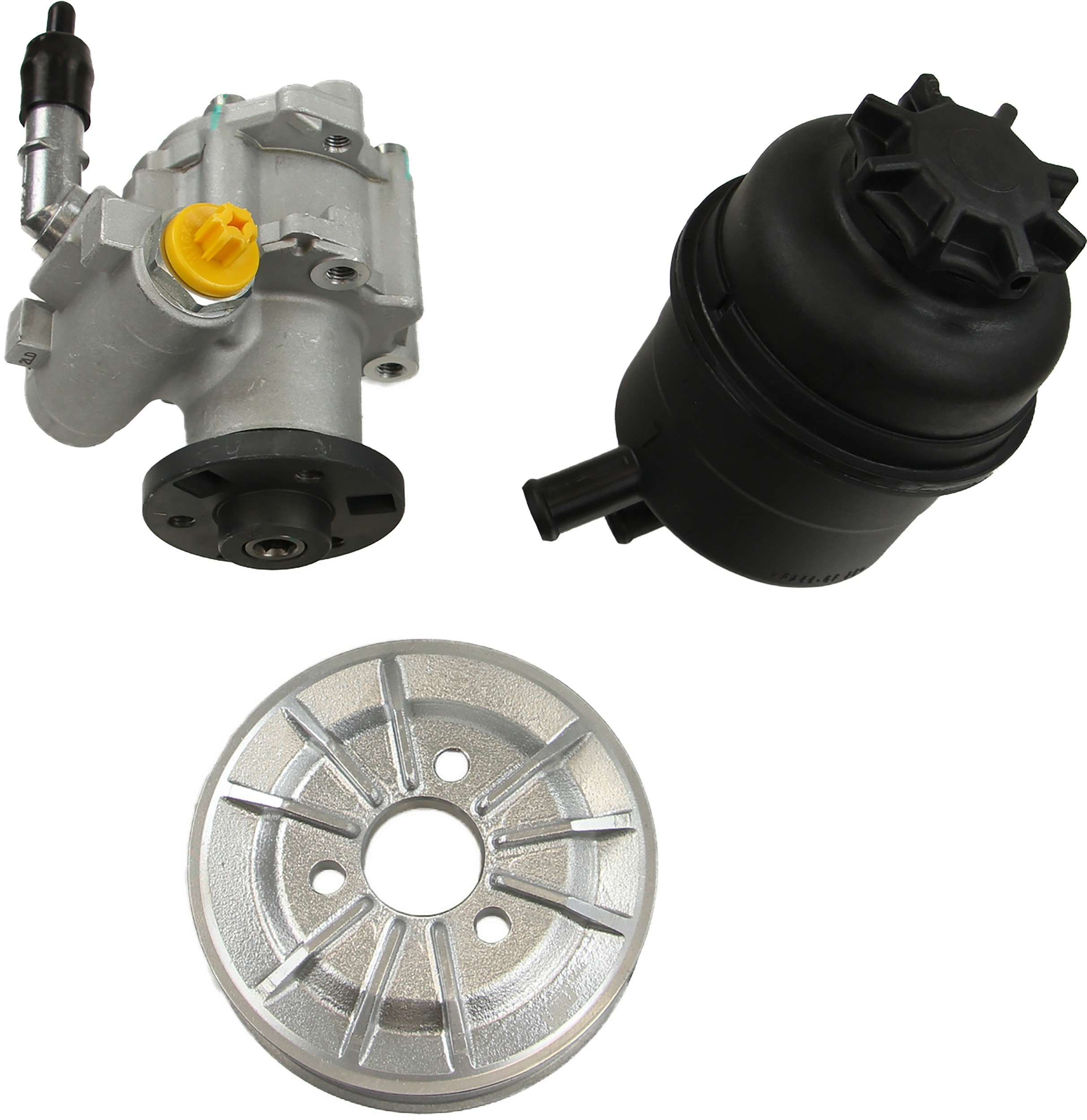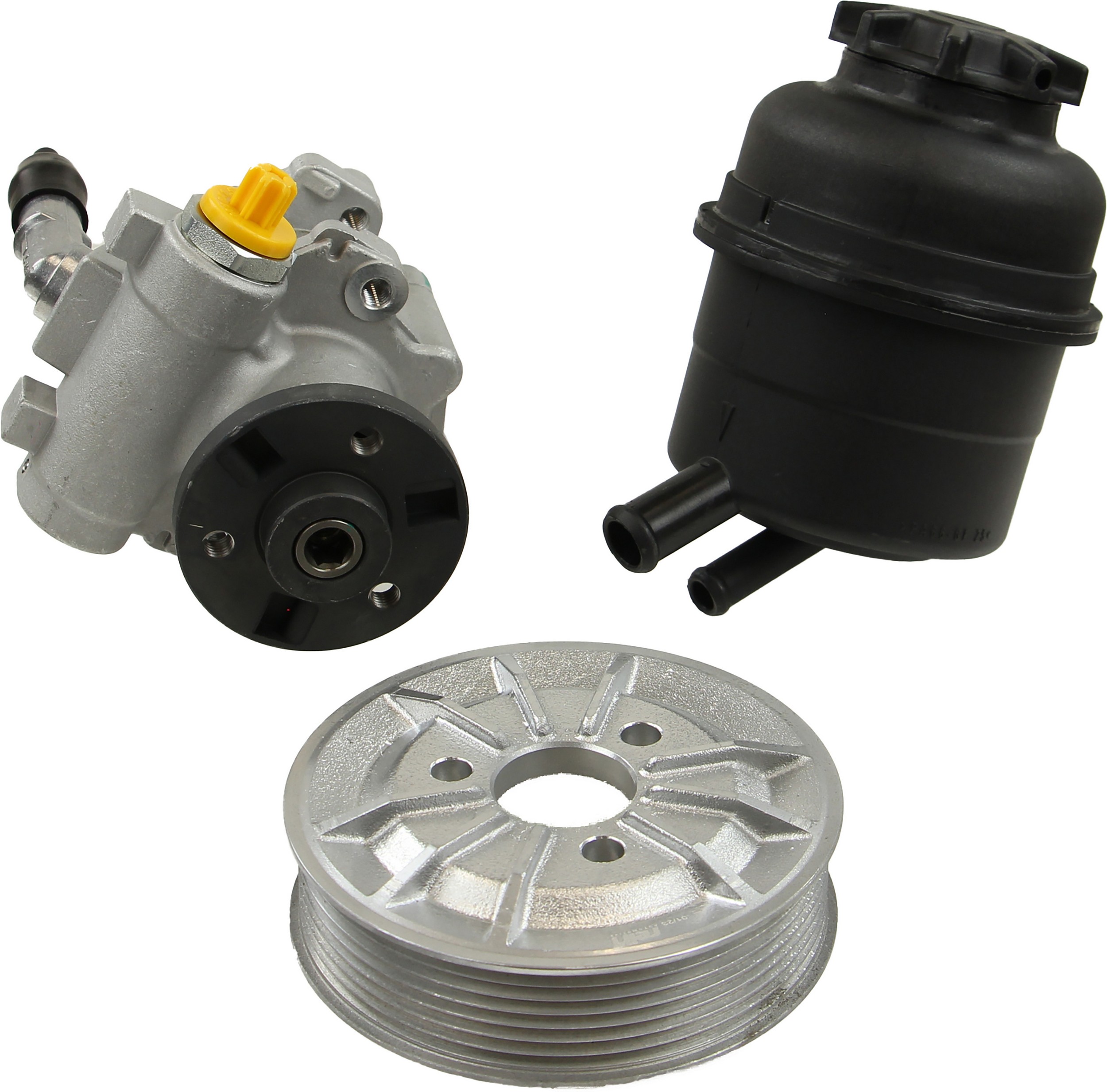 - Comes as complete kit with new pump, pulley, return pipe, o-ring, and reservoir.