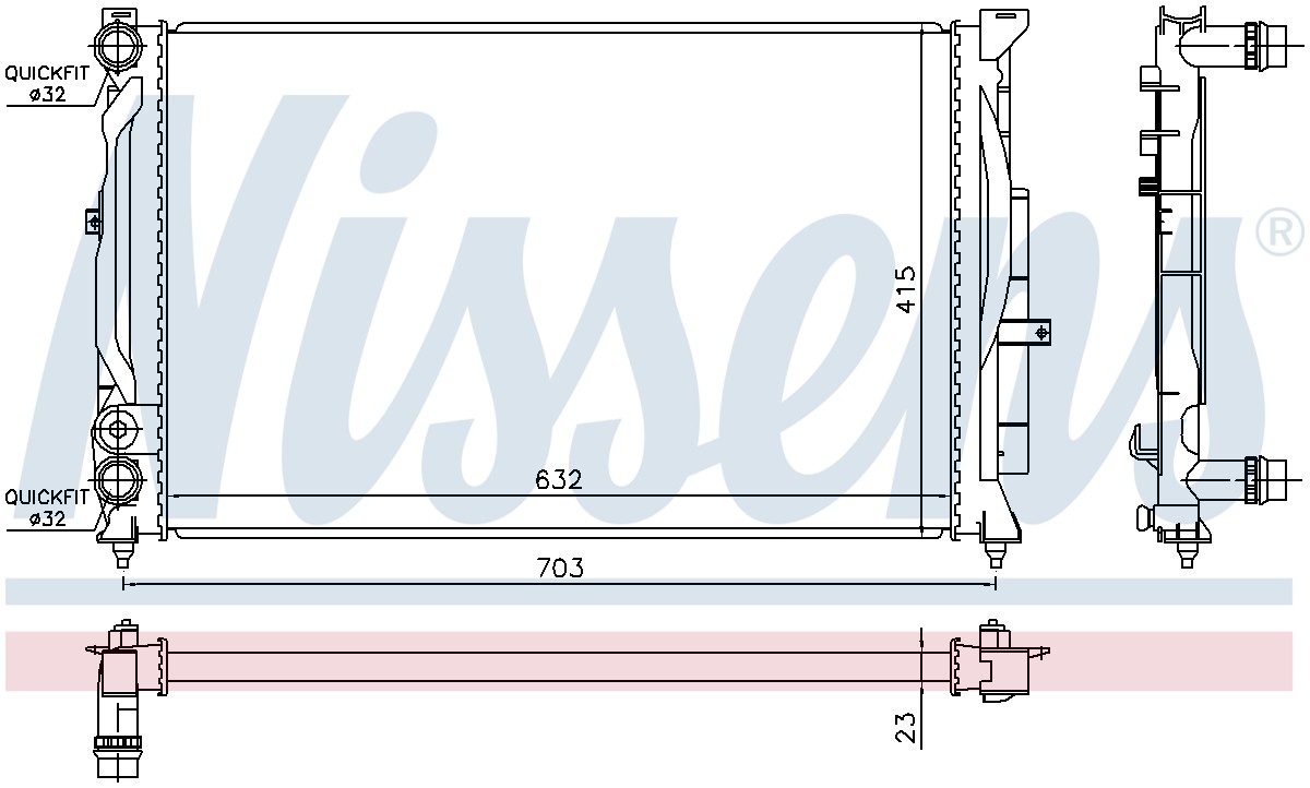 • Nissens radiators delivers supreme thermal performance and extended lifespan as a result of special design features and advancements in critical components. Nissens radiators are submitted to corrosion, vibration, pressure impulse, thermal expansion, and thermal performance tests. Nissens radiators are manufactured and tested to OE specifications.
