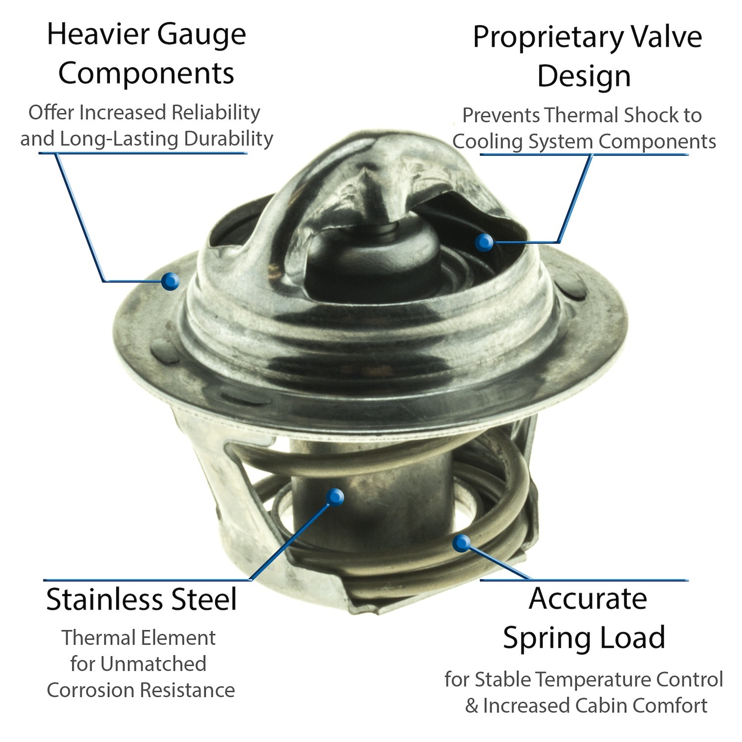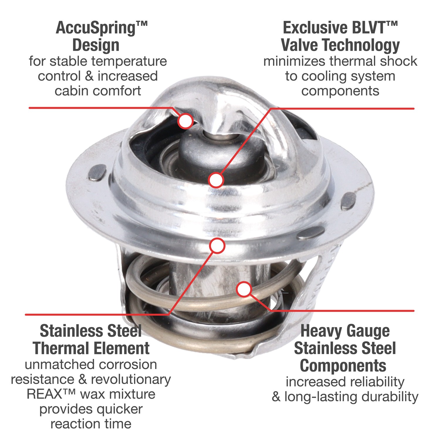 - UltraStat™ Thermostats are the toughest thermostats on the market. All heavy gauge stainless steel construction provides long-life durability, as well as complete corrosion resitance. Exclusive BLVT™ Valve technology minimizes thermal shock to cooling system components.