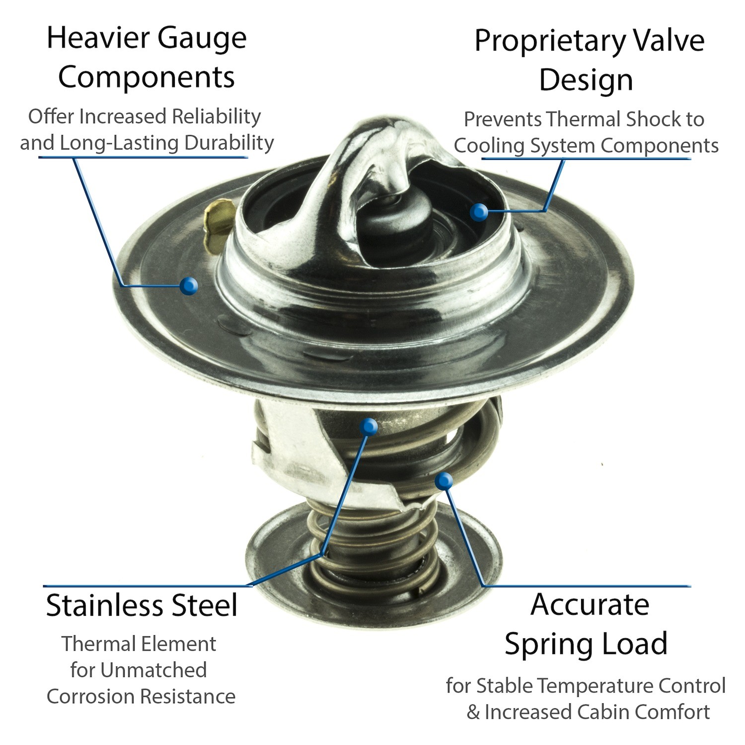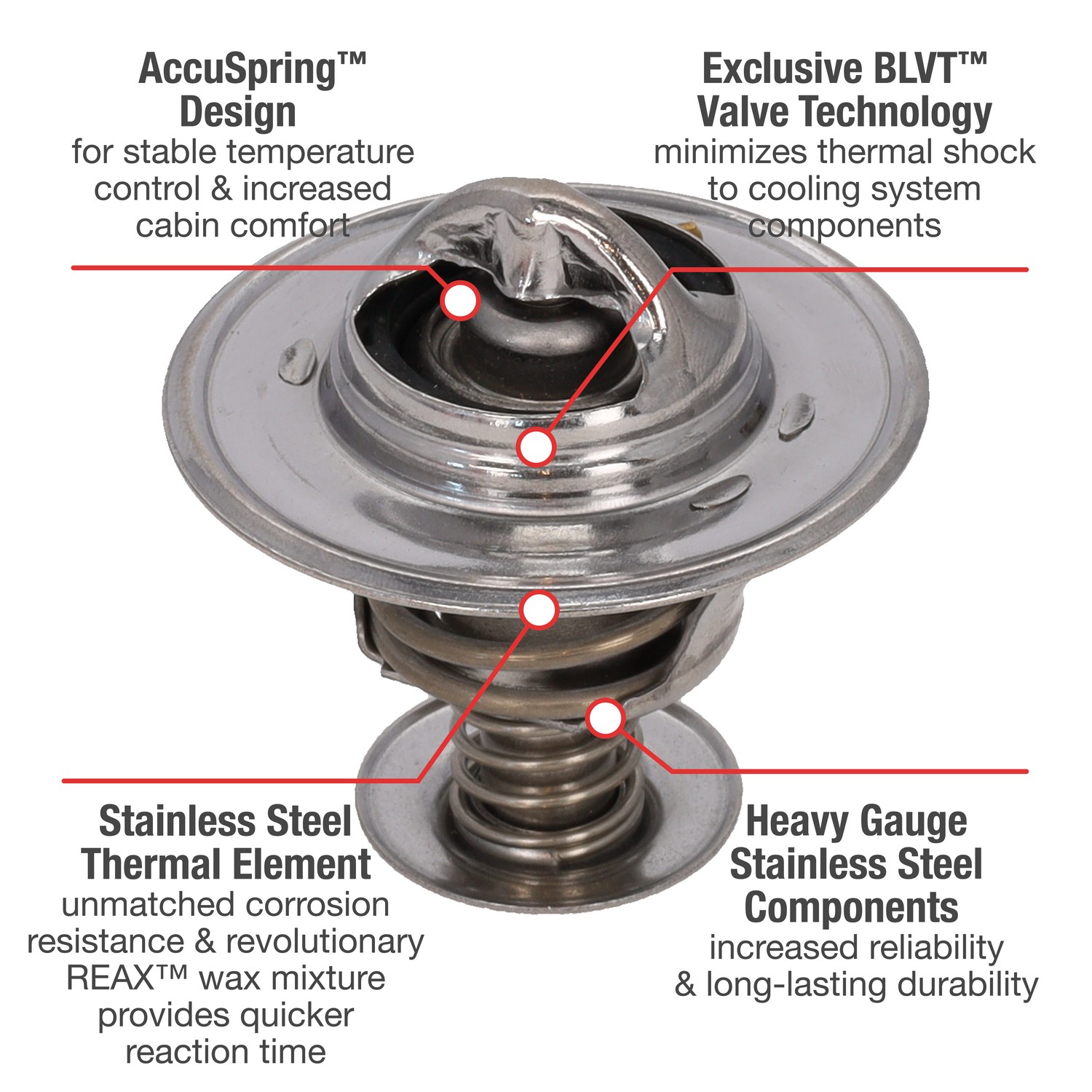 - UltraStat™ Thermostats are the toughest thermostats on the market. All heavy gauge stainless steel construction provides long-life durability, as well as complete corrosion resitance. Exclusive BLVT™ Valve technology minimizes thermal shock to cooling system components.