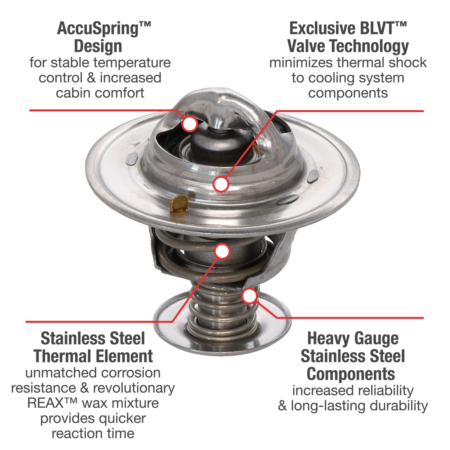 - UltraStat™ Thermostats are the toughest thermostats on the market. All heavy gauge stainless steel construction provides long-life durability, as well as complete corrosion resitance. Exclusive BLVT™ Valve technology minimizes thermal shock to cooling system components.