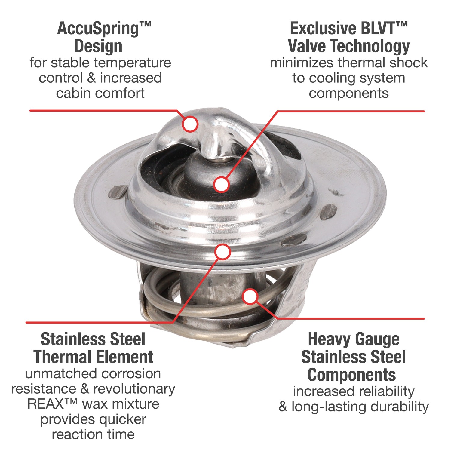 - UltraStat™ Thermostats are the toughest thermostats on the market. All heavy gauge stainless steel construction provides long-life durability, as well as complete corrosion resitance. Exclusive BLVT™ Valve technology minimizes thermal shock to cooling system components.