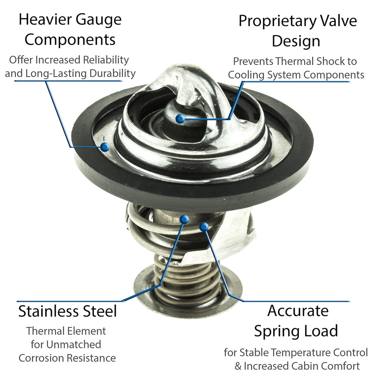 - UltraStat™ Thermostats are the toughest thermostats on the market. All heavy gauge stainless steel construction provides long-life durability, as well as complete corrosion resitance. Exclusive BLVT™ Valve technology minimizes thermal shock to cooling system components.