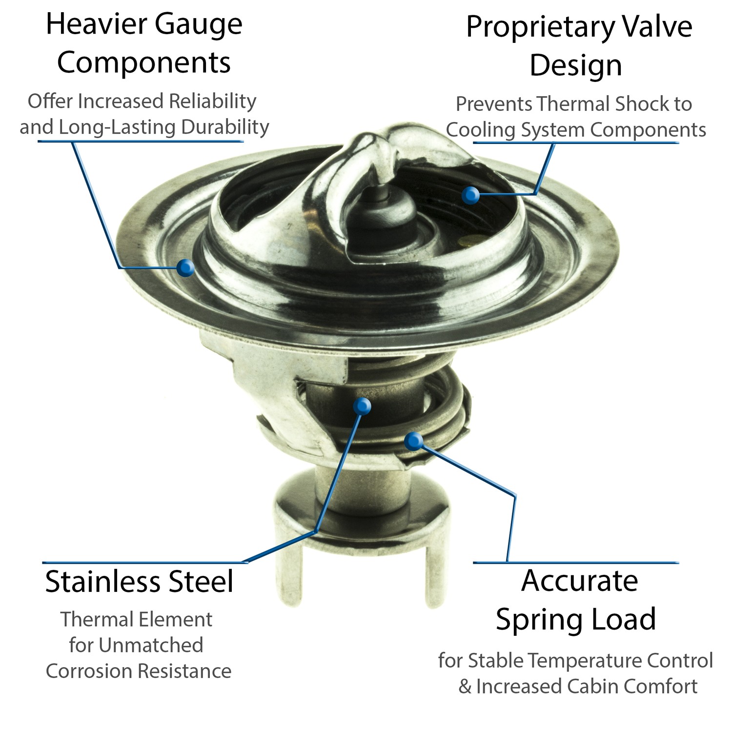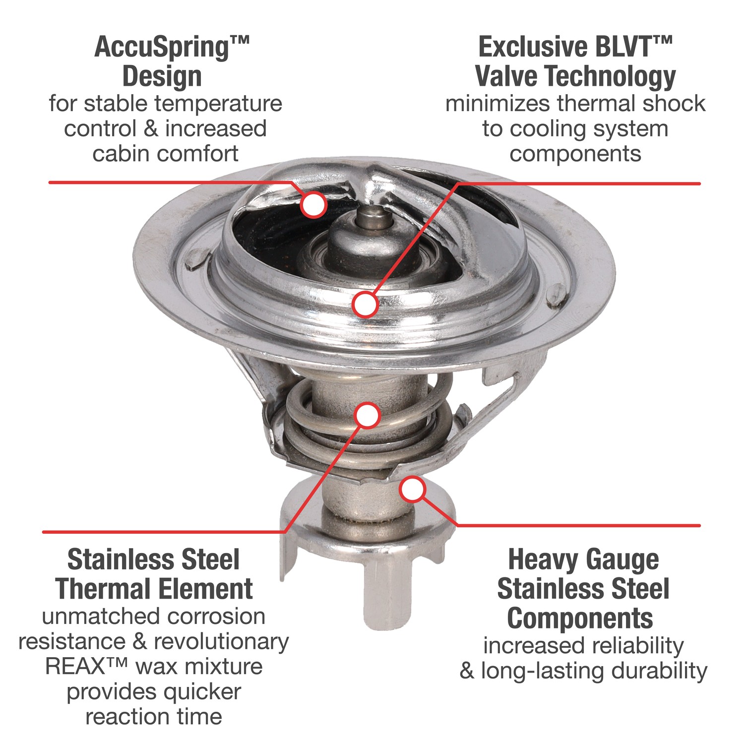 - UltraStat™ Thermostats are the toughest thermostats on the market. All heavy gauge stainless steel construction provides long-life durability, as well as complete corrosion resitance. Exclusive BLVT™ Valve technology minimizes thermal shock to cooling system components.