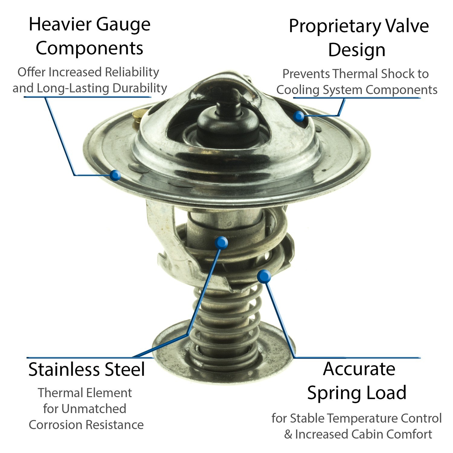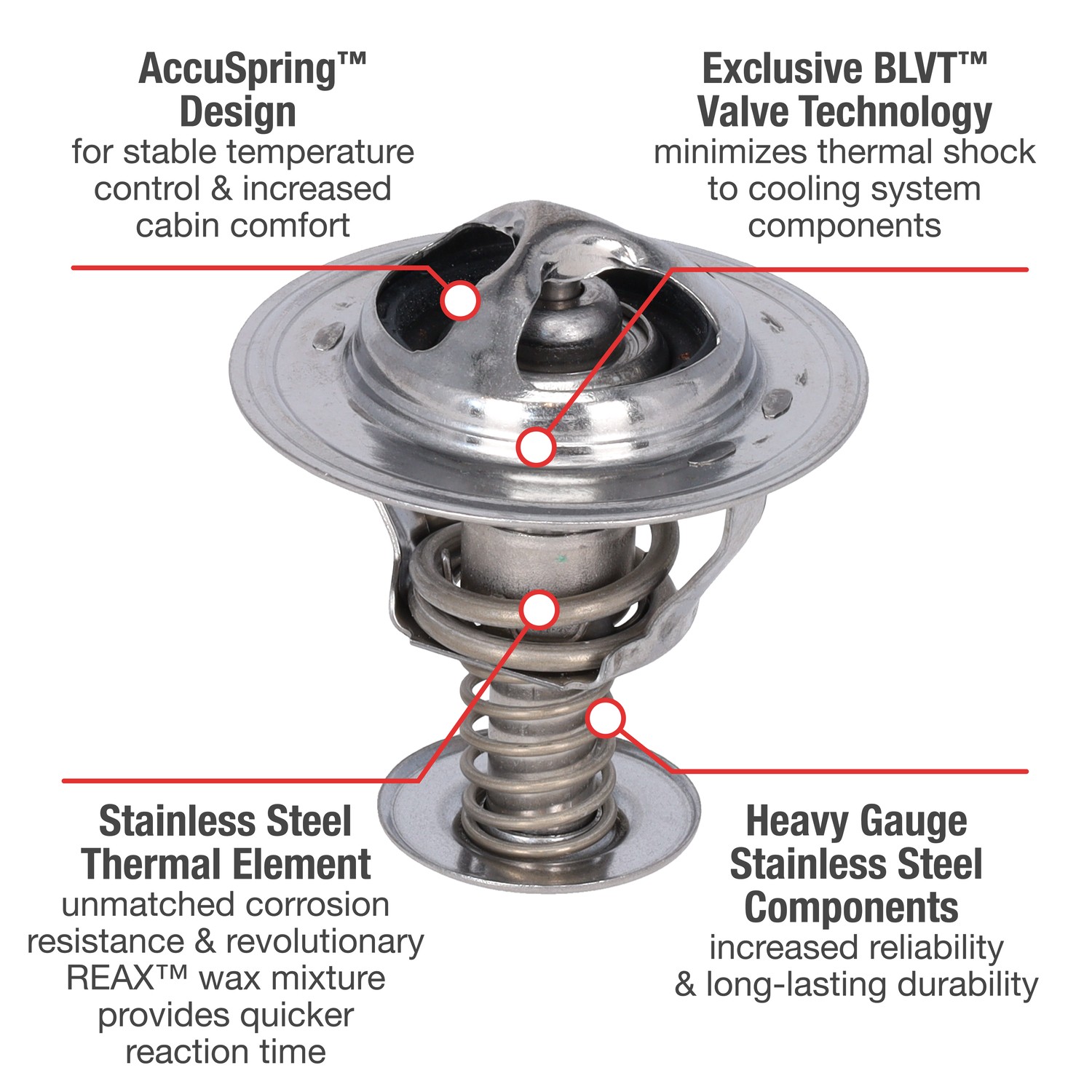 - UltraStat™ Thermostats are the toughest thermostats on the market. All heavy gauge stainless steel construction provides long-life durability, as well as complete corrosion resitance. Exclusive BLVT™ Valve technology minimizes thermal shock to cooling system components.