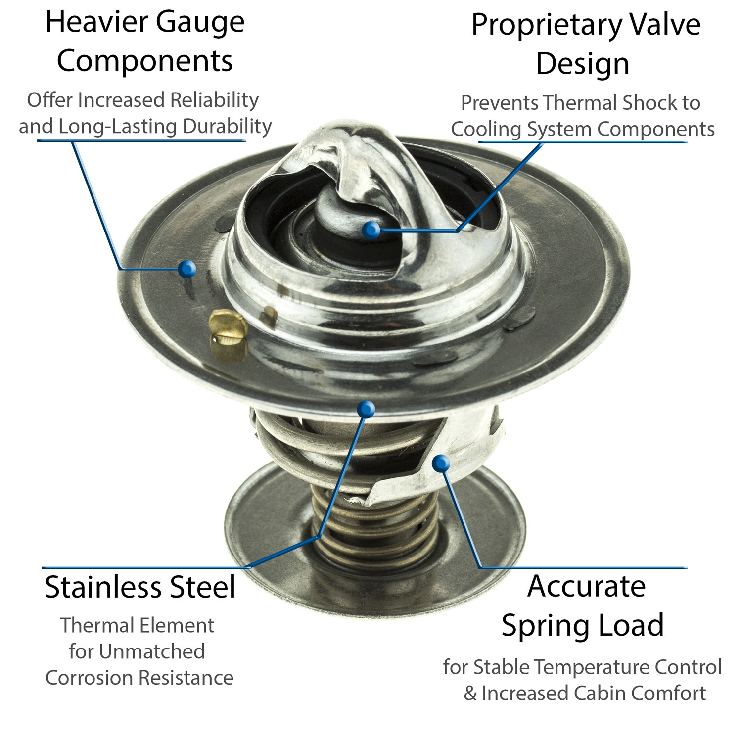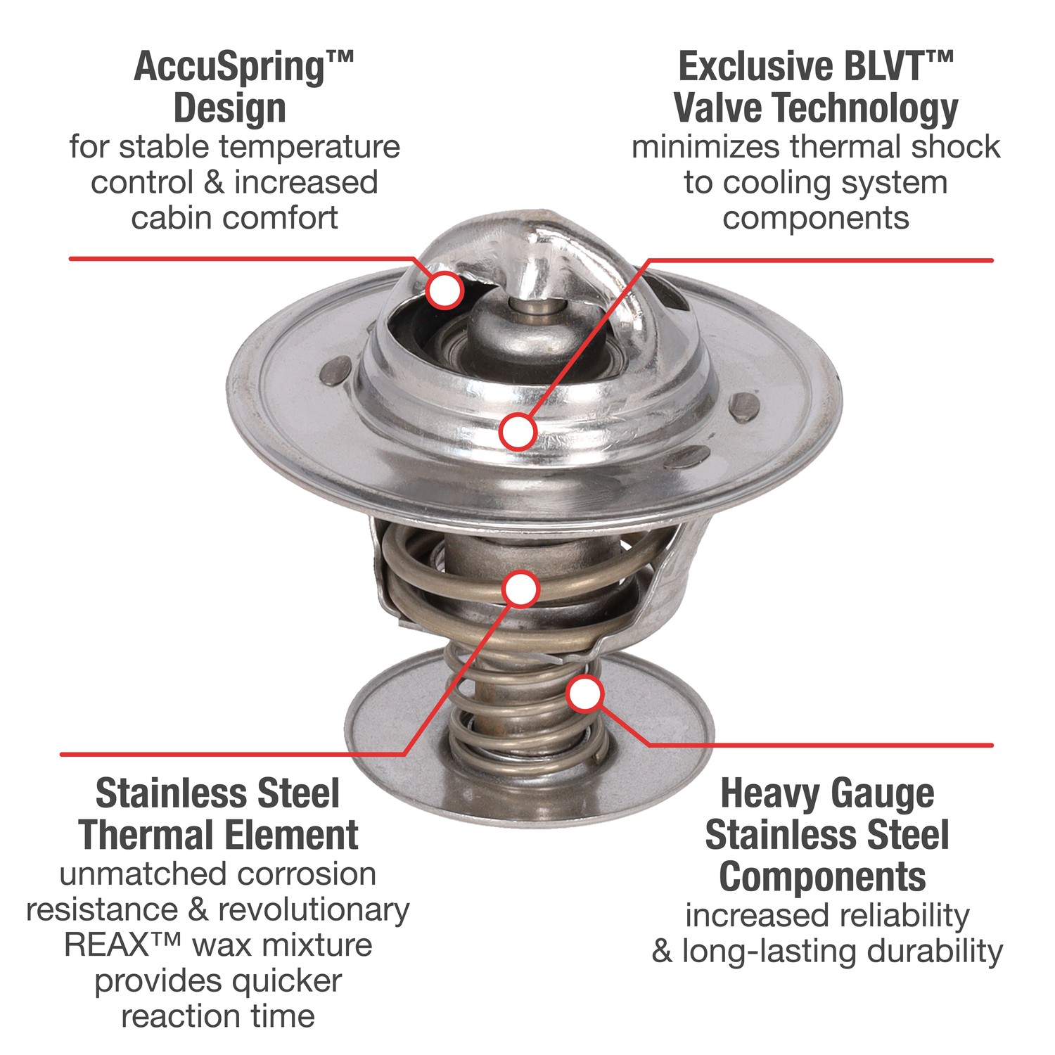 - UltraStat™ Thermostats are the toughest thermostats on the market. All heavy gauge stainless steel construction provides long-life durability, as well as complete corrosion resitance. Exclusive BLVT™ Valve technology minimizes thermal shock to cooling system components.